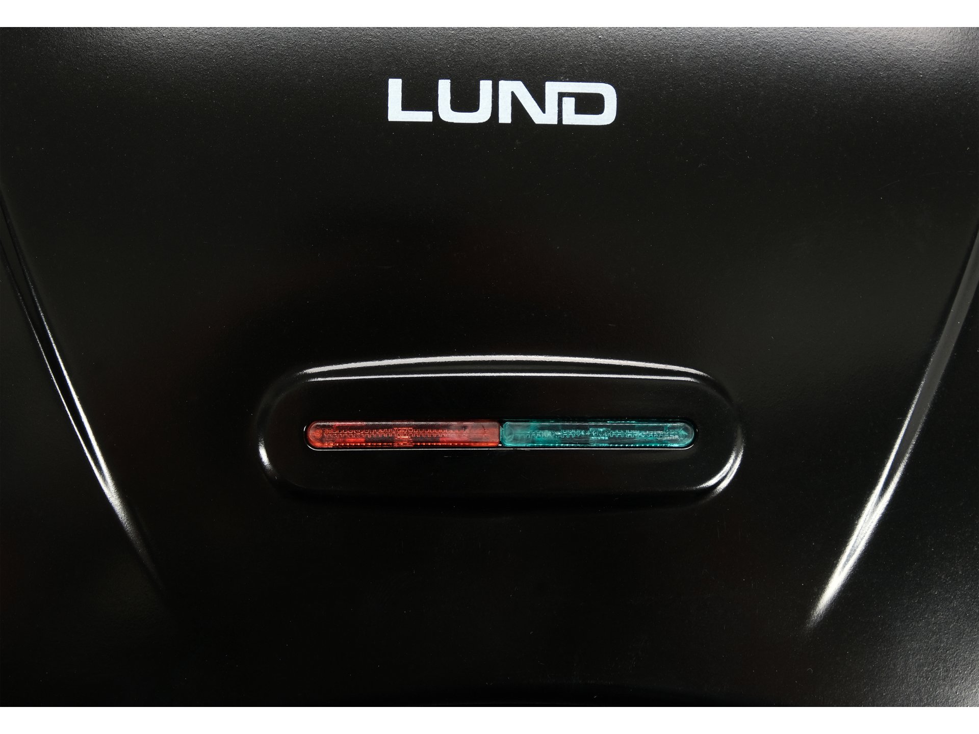 Mechanizm blokady pokrywy umożliwia zamknięcie urządzenia podczas opiekania, co zapewnia równomierny docisk i przyspieszenie procesu. Lampki kontrolne sygnalizują podłączenie do zasilania i osiągnięcie temperatury roboczej, eliminując zgadywanie momentu gotowości do użycia.