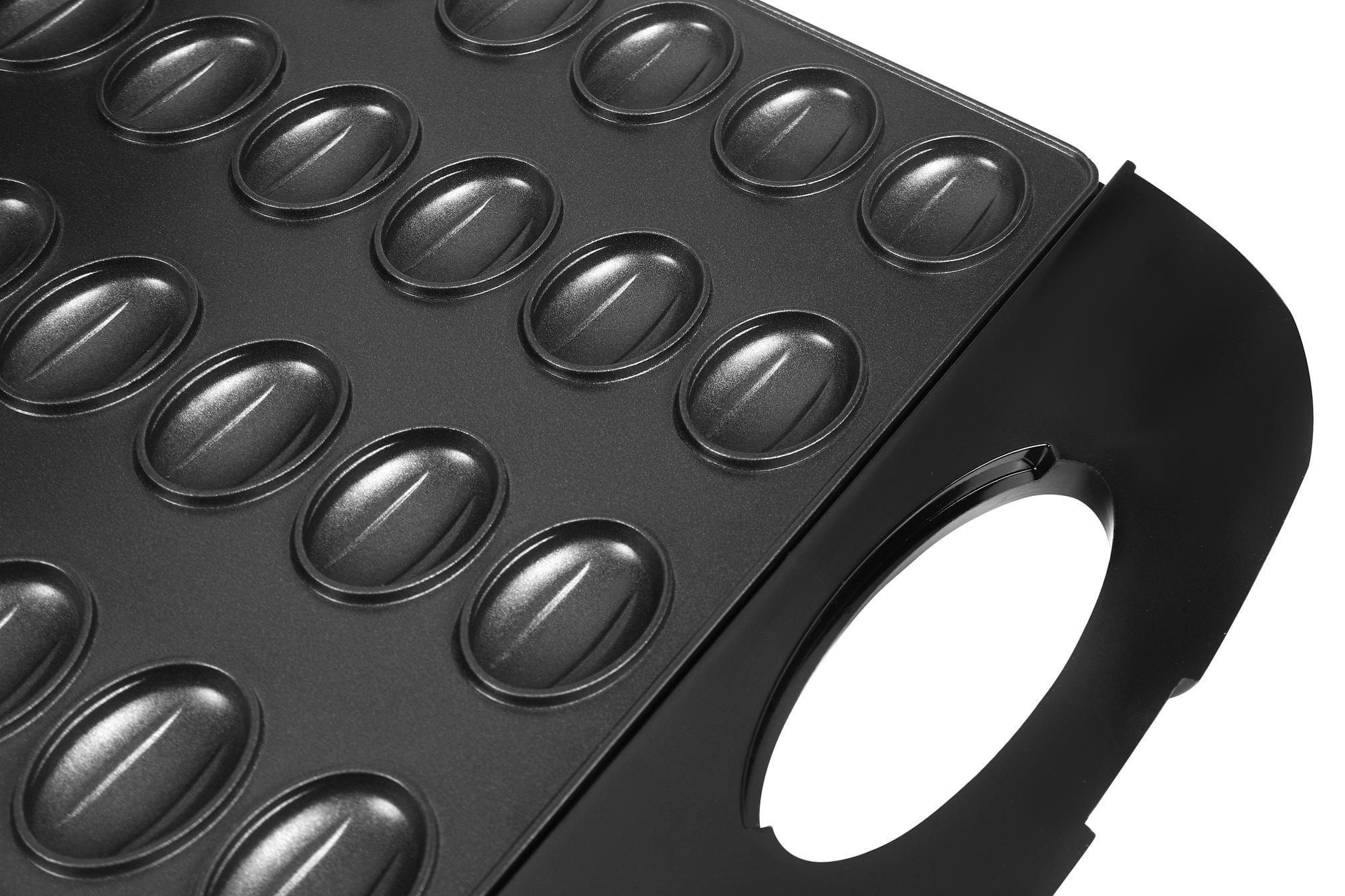 Płyty pokryte są powłoką zapobiegającą przywieraniu ciasta. Ułatwia to wyjmowanie gotowych ciasteczek bez uszkadzania ich kształtu oraz skraca czas czyszczenia urządzenia po użyciu.