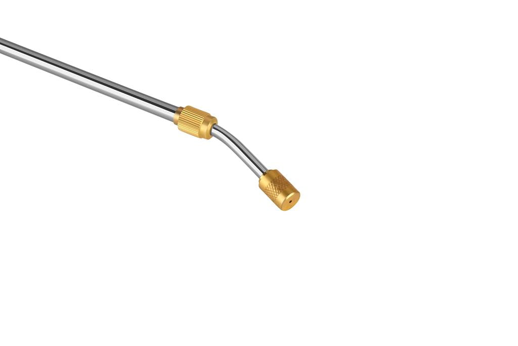 Regulowana wydajność przepływu umożliwia precyzyjne dozowanie cieczy. Przy pojemności zbiornika 5 litrów i maksymalnej wydajności jeden napełniony zbiornik wystarcza na około 1,5 minuty intensywnego oprysku lub ponad 3 minuty przy niskim przepływie.