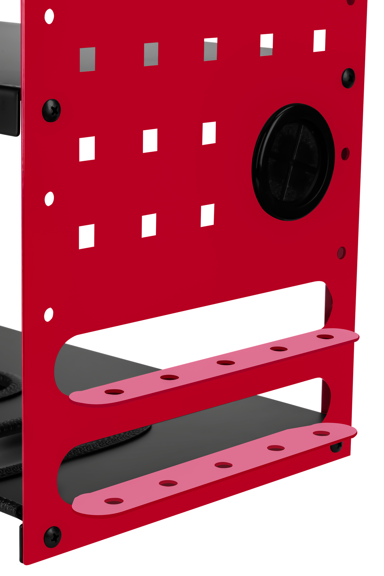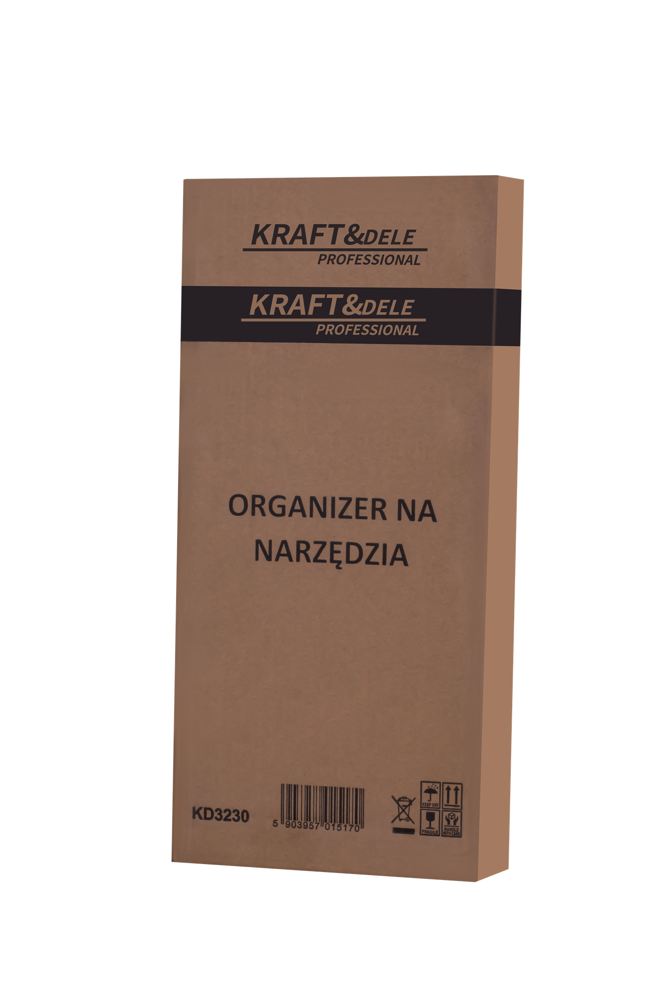Uchwyt ścienny pozwala zamocować organizer na wysokości dostosowanej do potrzeb użytkownika. Przechowywanie narzędzi na ścianie zwalnia przestrzeń blatu i podłogi, a jednocześnie utrzymuje sprzęt w zasięgu ręki podczas pracy.