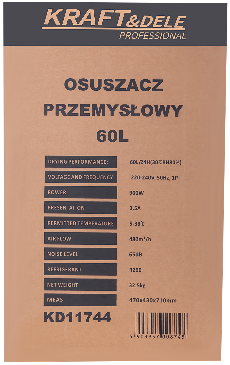 KD11744 to osuszacz powietrza klasy przemysłowej marki KRAFT&DELE, przeznaczony do intensywnego użytkowania w dużych obiektach o podwyższonej wilgotności. Urządzenie kondensacyjne o wydajności 60 litrów na dobę skutecznie obniża poziom wilgotności względnej, chroniąc konstrukcje budowlane, materiały magazynowe oraz wyposażenie przed pleśnią, korozją i degradacją wywołaną nadmierną wilgocią.