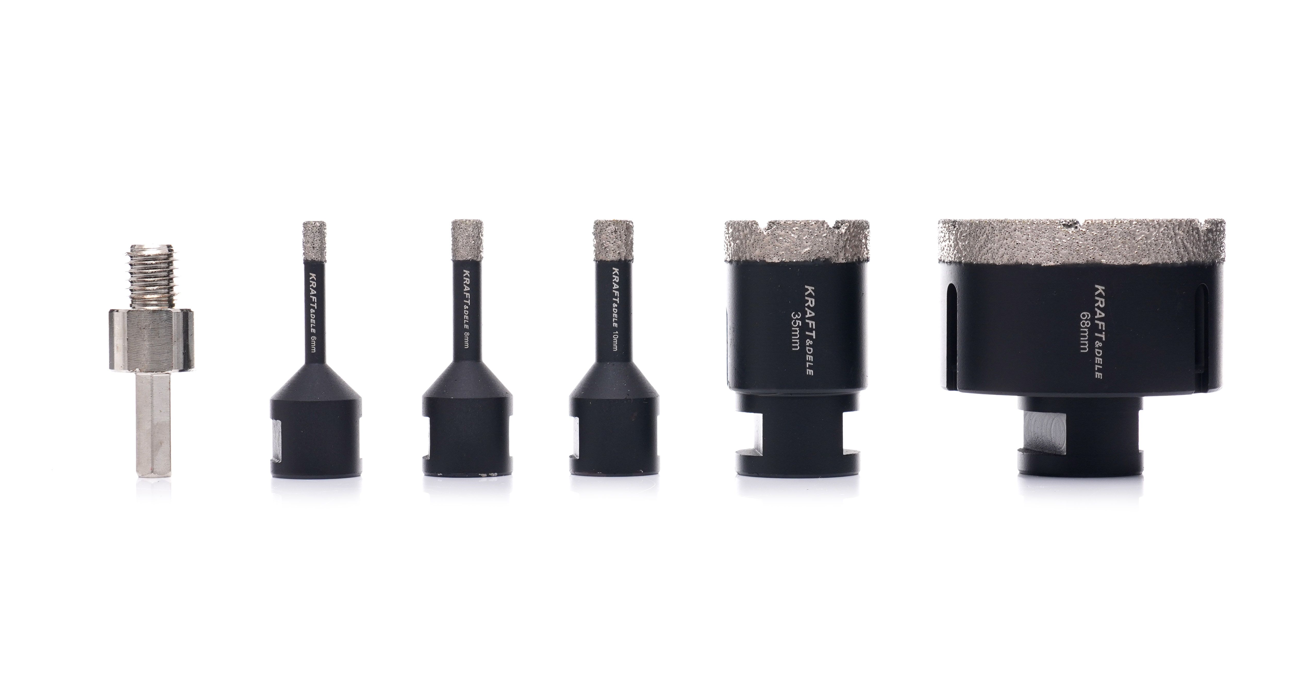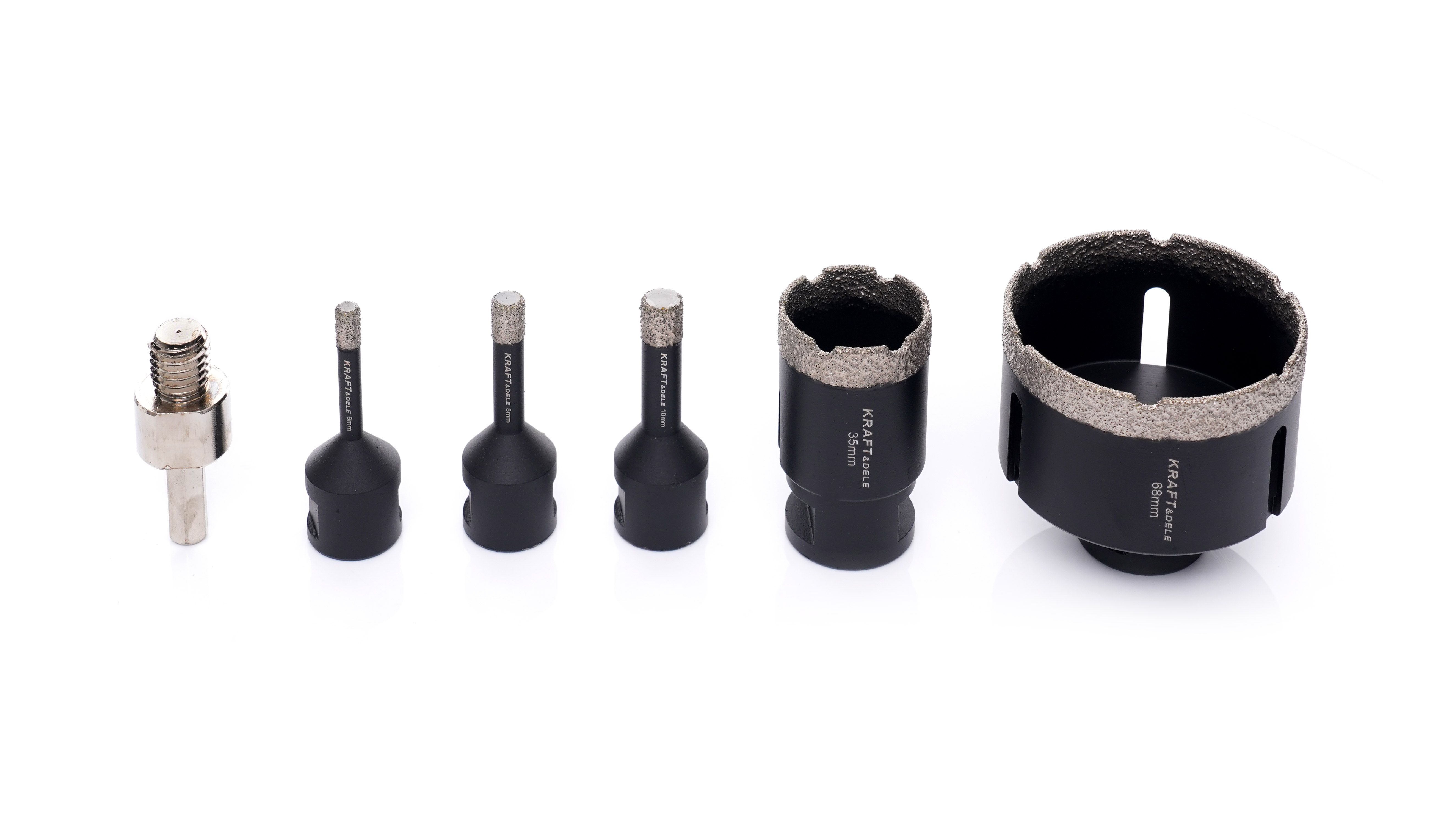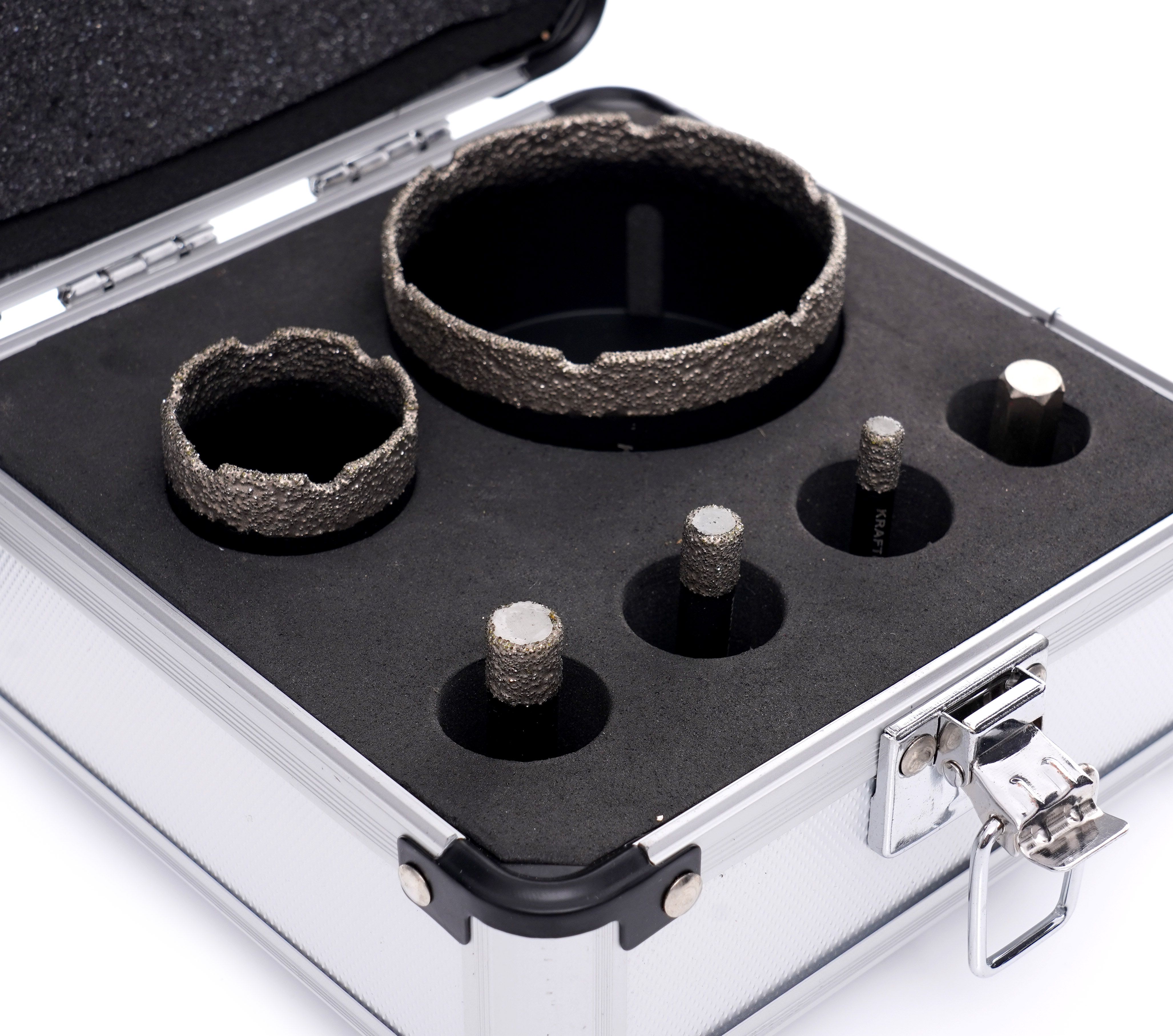 Otwornice diamentowe w walizce 6szt. KD11226 to zestaw otwornic koronowych do wiercenia bez udaru „na mokro” w gresie, ceramice, porcelanie, marmurze i twardych kaflach. Jeśli potrzebujesz sprawdzonego kompletu na typowe prace montażowe, Kraft&Dele KD11226 pozwala pracować wygodnie i w przewidywalny sposób.