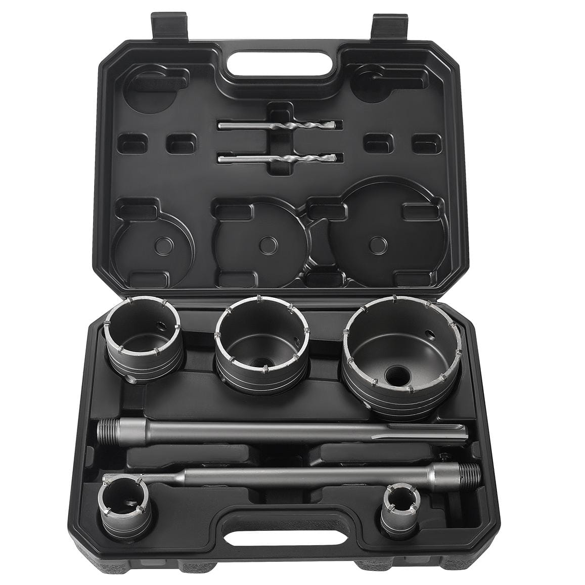 KD12640 to kompletny zestaw dziewięciu otwornic koronkowych z ostrzami z węglików spiekanych HM, przeznaczonych do wiercenia otworów w betonie, cegle, kamieniu oraz płytach gipsowych i cementowych. Zestaw zawiera adaptery SDS Plus i SDS Max, co umożliwia współpracę z szeroką gamą wiertarek udarowych i młotowiertarek dostępnych na rynku.