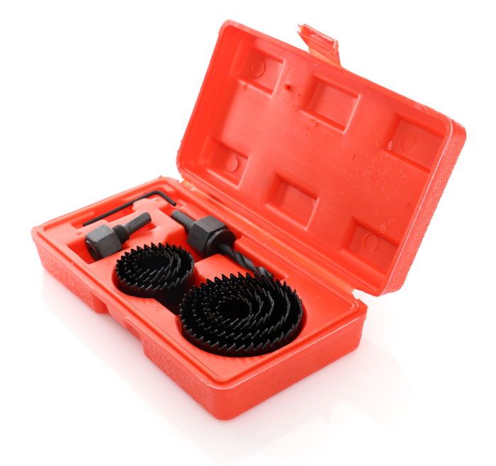 Walizka/pudełko pozwala przechowywać komplet w jednym miejscu i bezpiecznie przewozić zestaw otwornic do drewna.