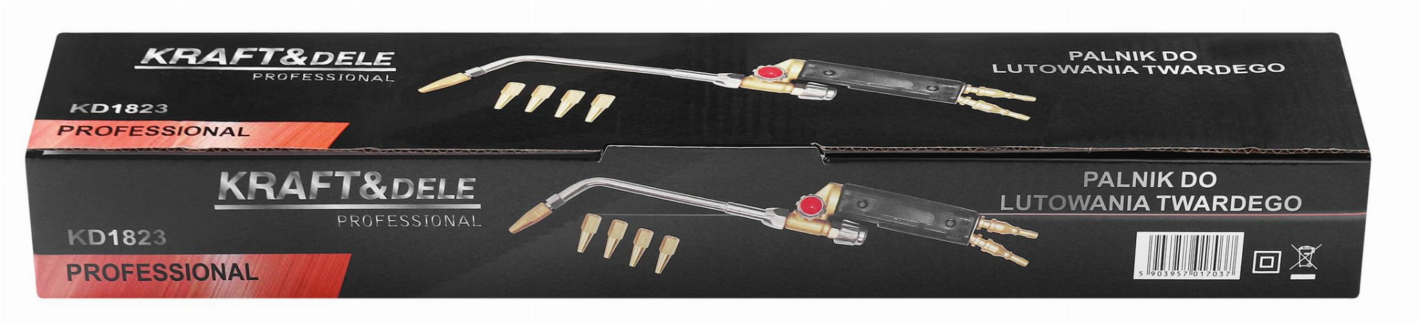 KD1823 to palnik gazowy przeznaczony do lutowania twardego — procesu łączenia metali w temperaturach powyżej 450°C, stosowanego m.in. przy instalacjach miedzianych, chłodniczych i klimatyzacyjnych. Urządzenie wyposażono w regulację dopływu gazu oraz zestaw czterech wymiennych dysz, co pozwala dostosować charakterystykę płomienia do rodzaju wykonywanej pracy.