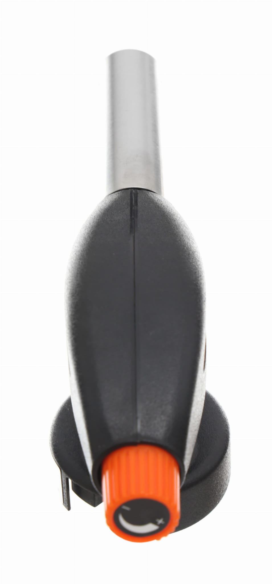 Pokrętło regulacji pozwala płynnie dostosować intensywność płomienia do rodzaju wykonywanej pracy — mniejszy płomień przy delikatnym lutowaniu miękkiego spoiwa, większy przy opalaniu farby lub rozmrażaniu rur.