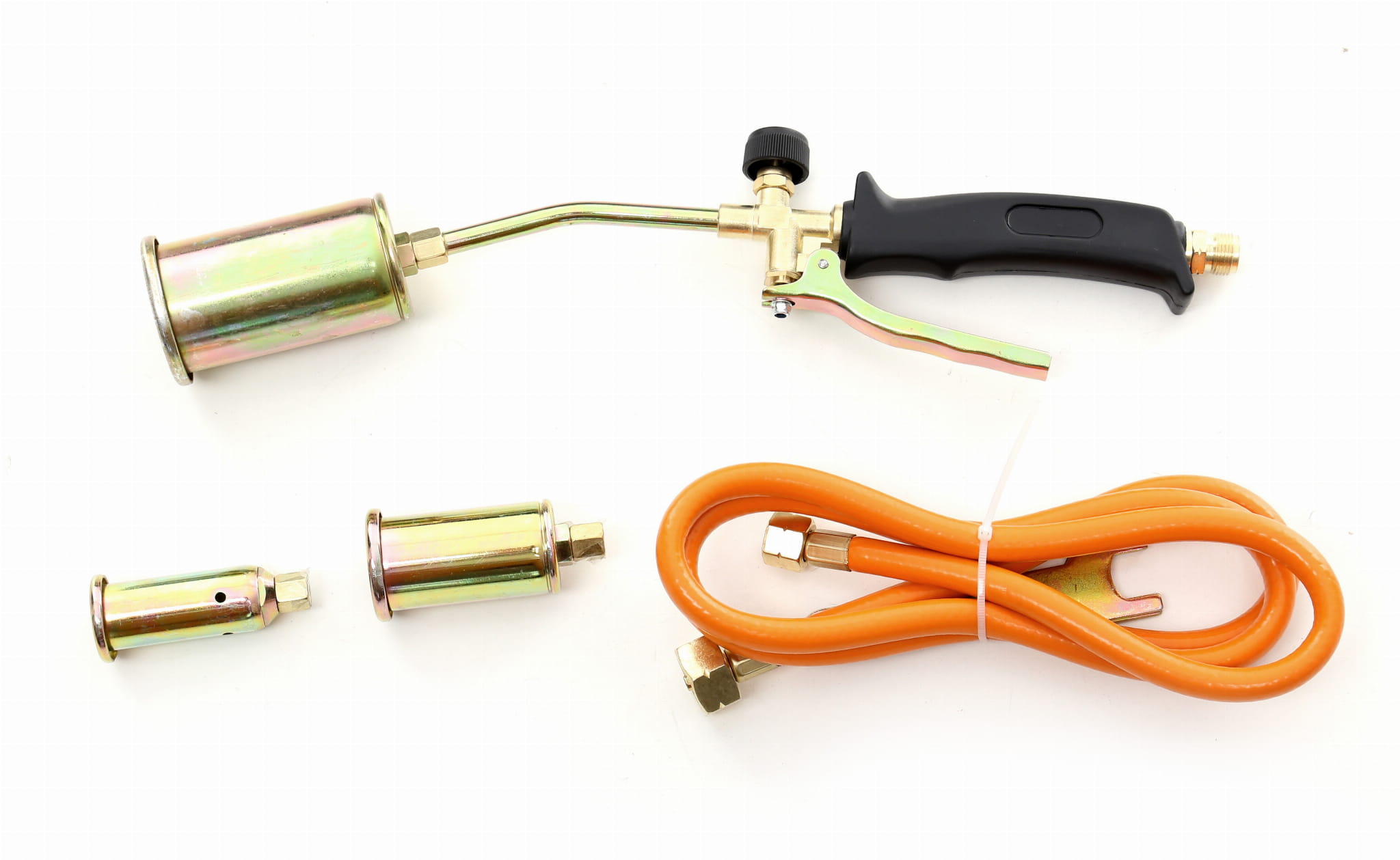Palnik gazowy KD10302 z regulacją płomienia, wąż zbrojony 1,5 m, dyfuzory 25/35/50 mm, 2 klucze do obsługi palnika, oryginalne opakowanie.