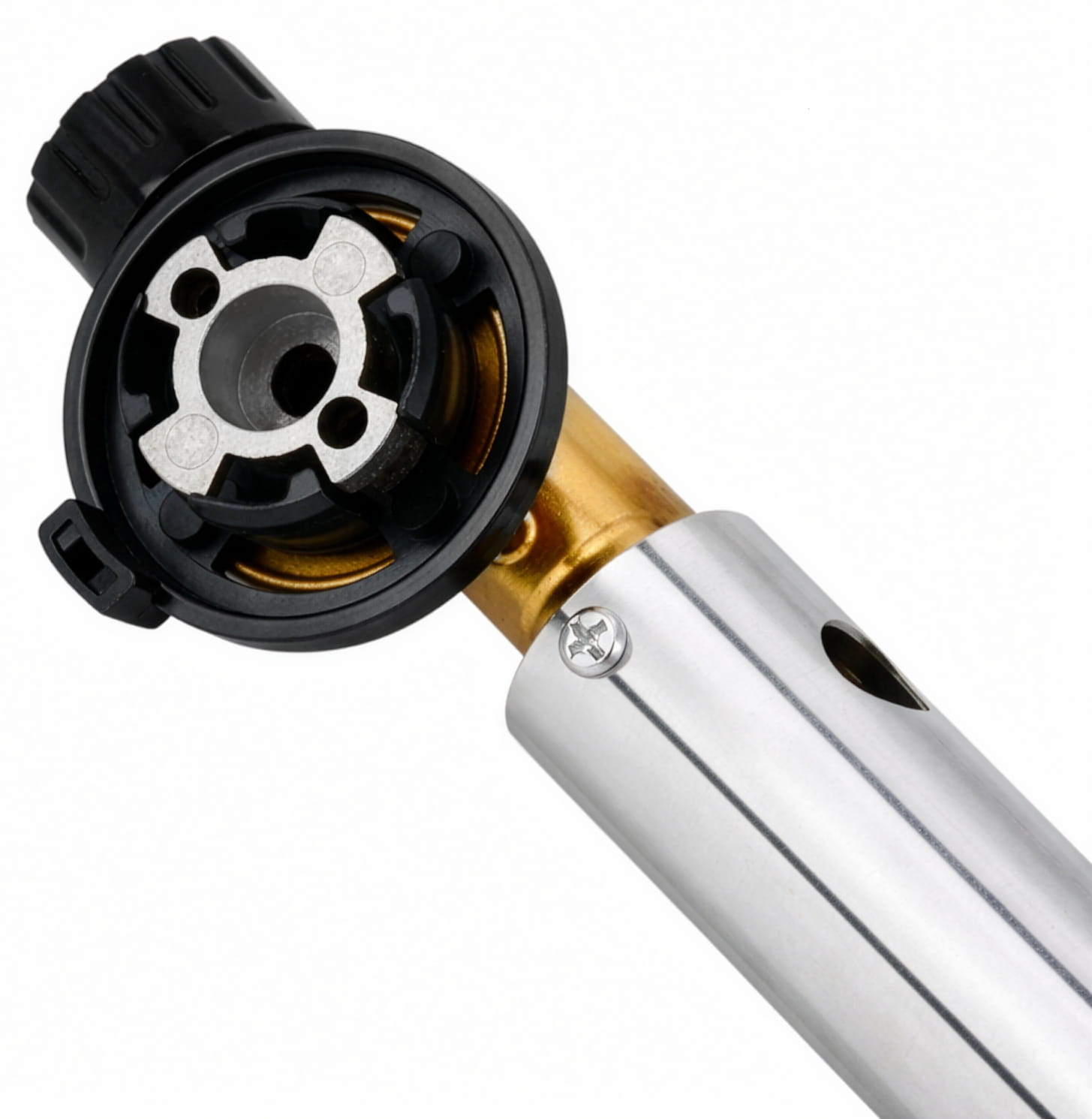 Wbudowany mechanizm piezo generuje iskrę po naciśnięciu przycisku, eliminując konieczność użycia zapałek lub zapalniczki. Rozwiązanie szczególnie przydatne podczas pracy w jednej ręce lub w miejscach o ograniczonym dostępie.