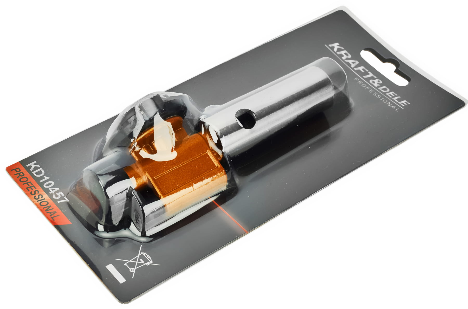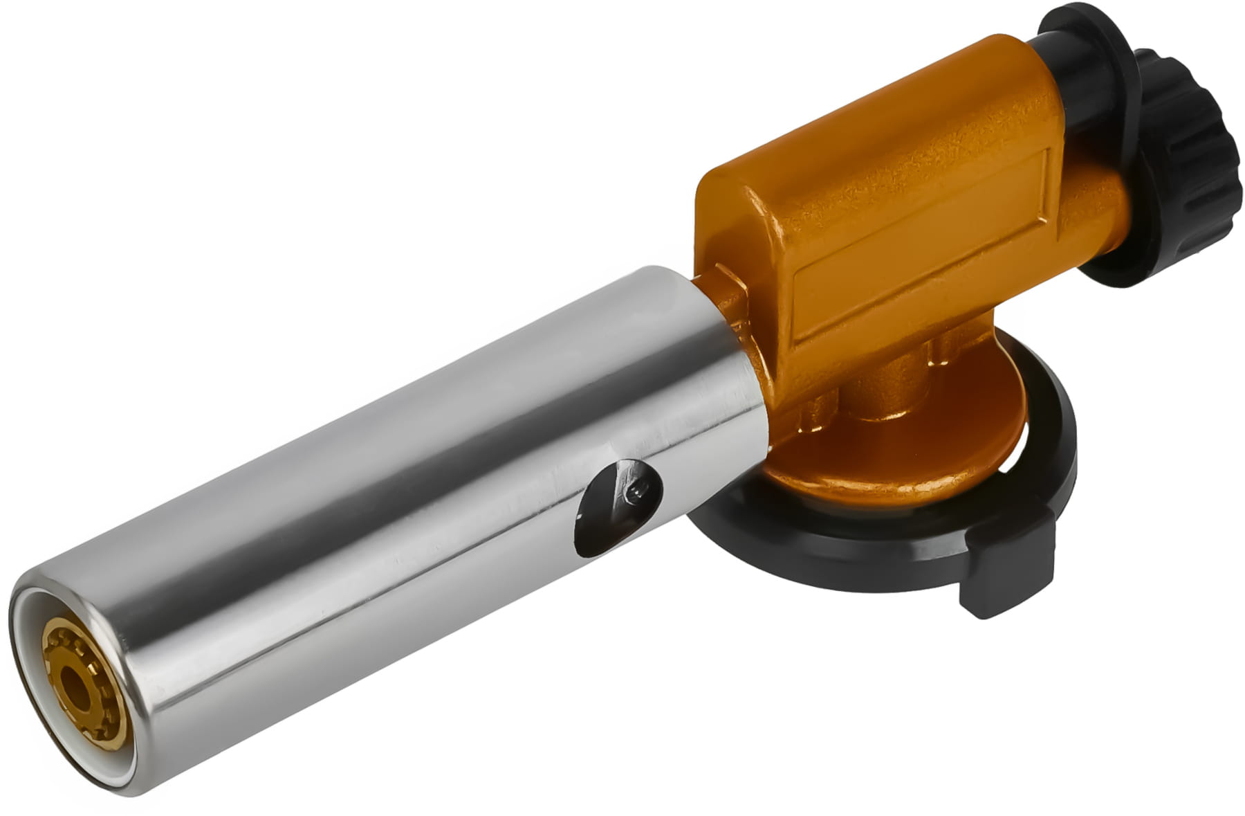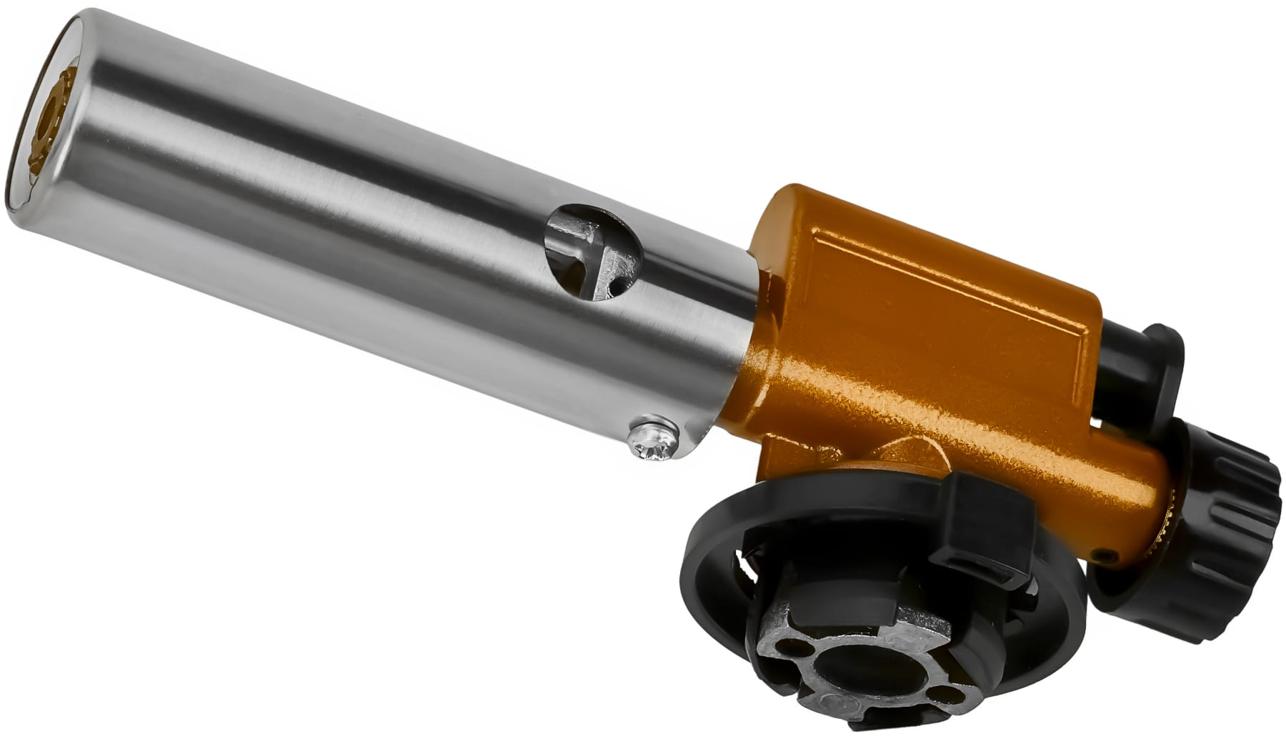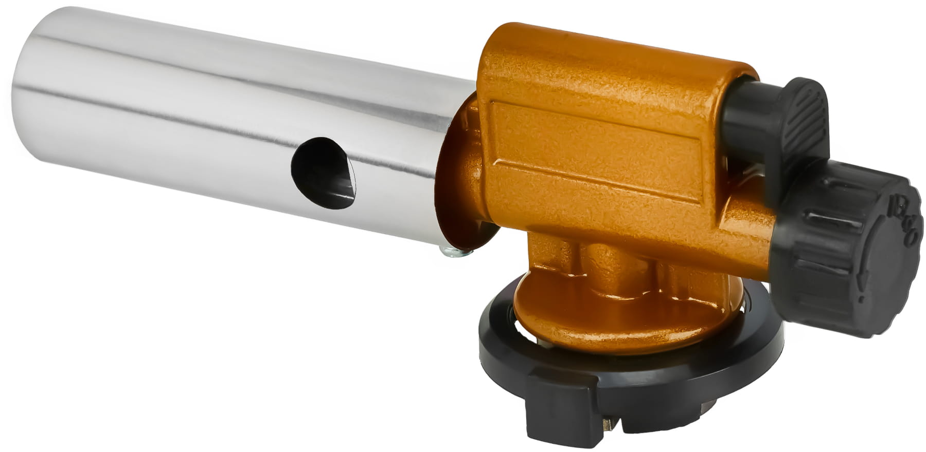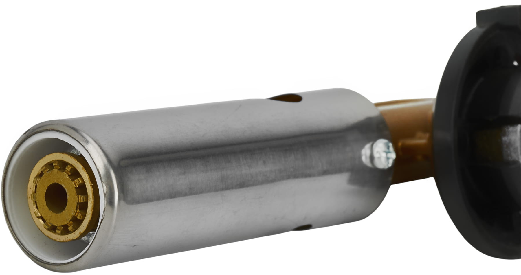 Ręczny palnik gazowy z korpusem z żeliwa i zapłonem piezoelektrycznym, przeznaczony do prac technicznych, warsztatowych i instalacyjnych. Współpracuje z kartuszami gazowymi w standardzie gwintu 7/16", zapewniając stabilne i kontrolowane połączenie z butlą.