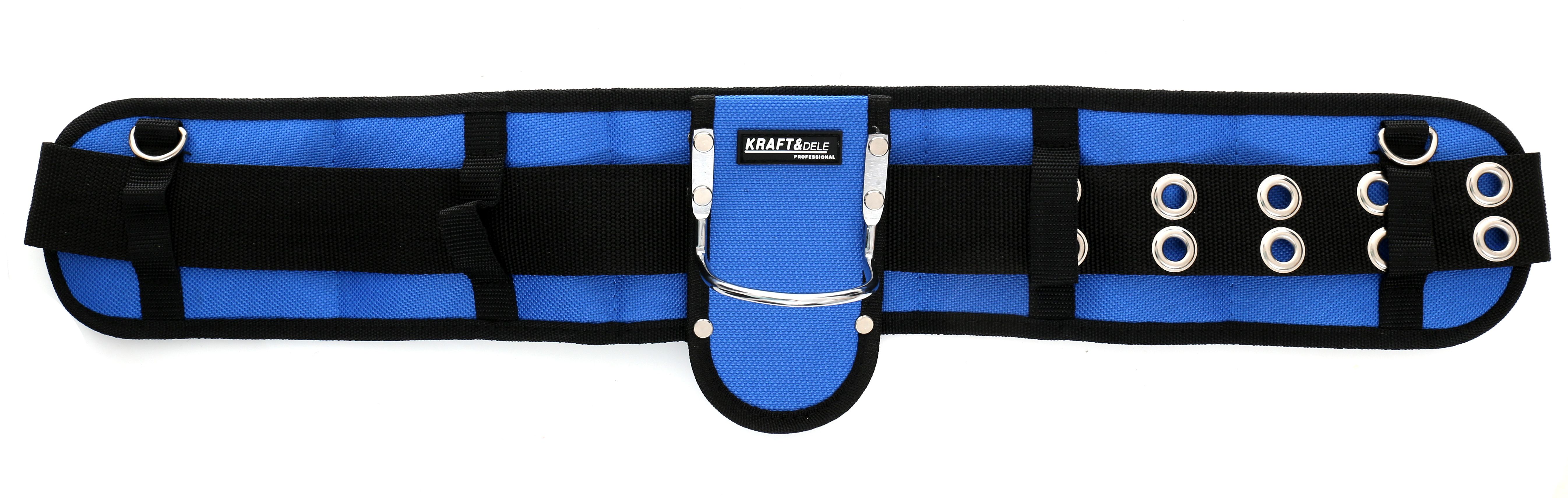 Pas narzędziowy monterski KRAFT&DELE KD2056 pozwala rozbudować konfigurację o dodatkowe kieszenie i zaczepy, gdy zmienia się zakres prac.