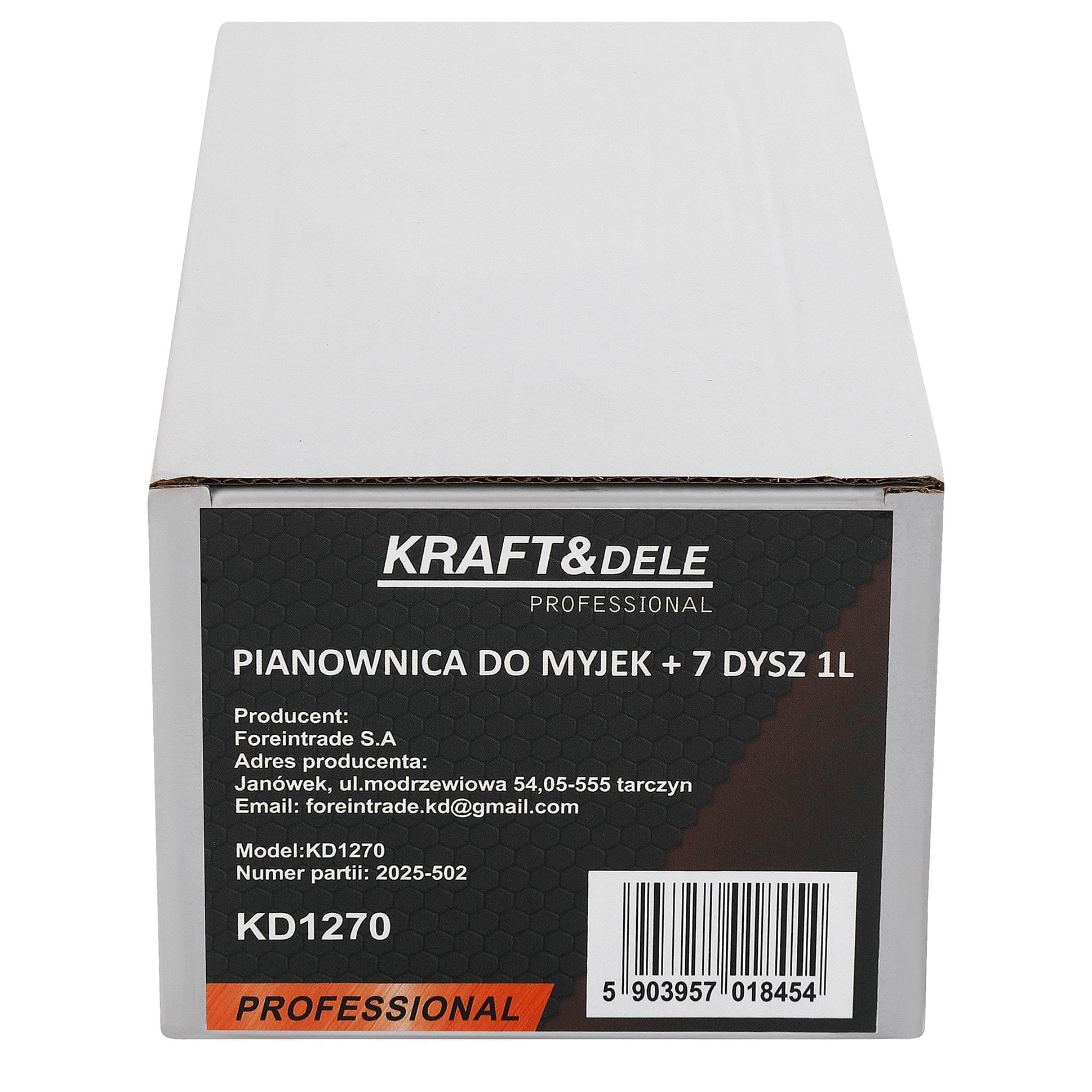 | Zawartość zestawu | Pianownica KD1270, zestaw 7 dysz, dokument sprzedaży |