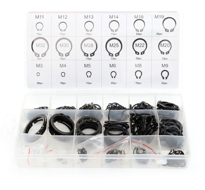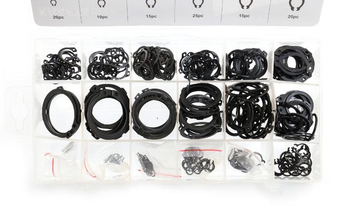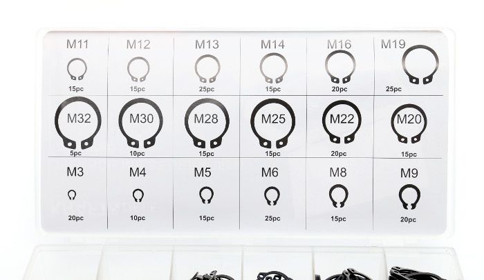 Zestaw zewnętrznych pierścieni segera KD10510 pozwala dobrać element bez przerywania pracy i bez konieczności dokupowania pojedynczych sztuk.