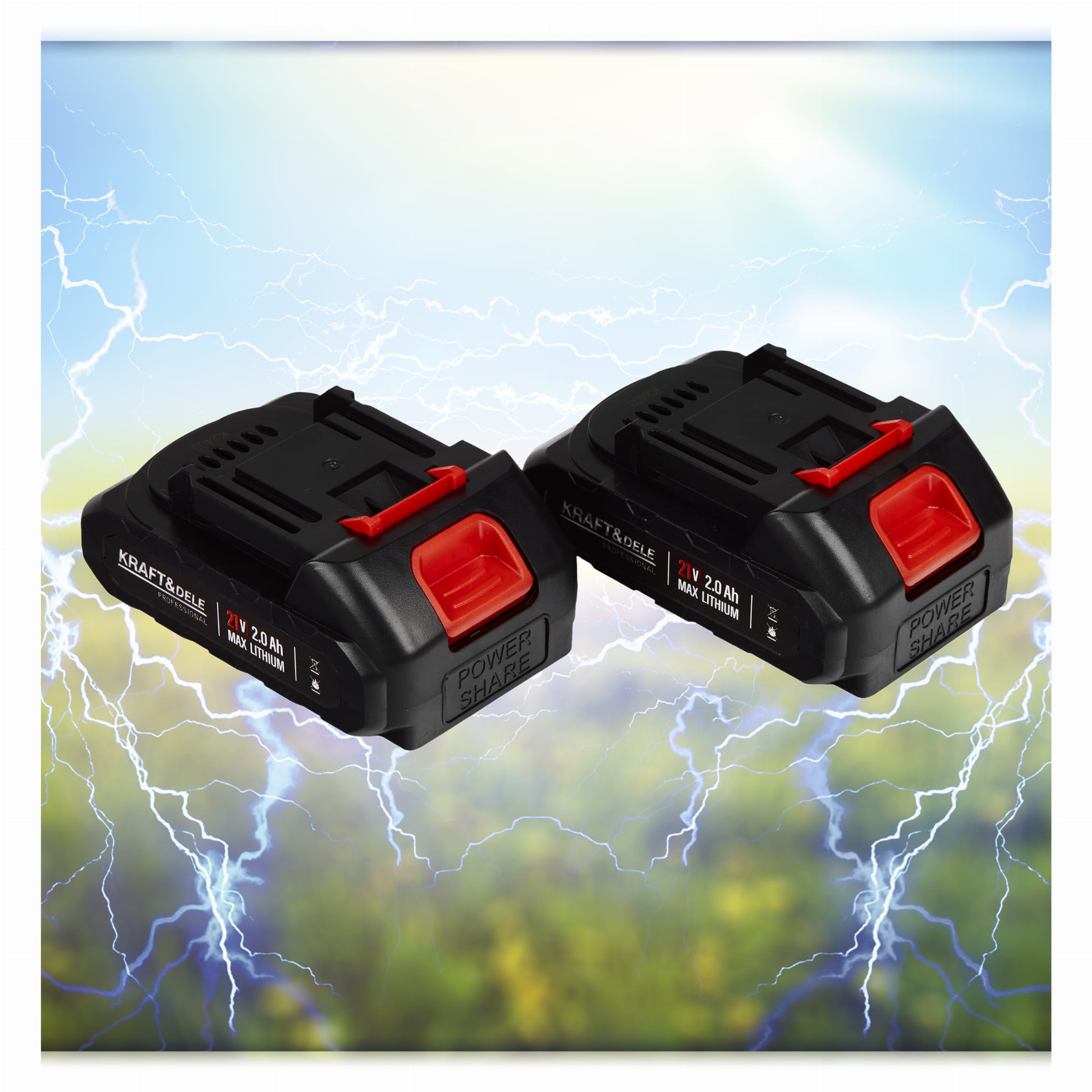 Zestaw zawiera dwie baterie o pojemności 2,0 Ah każda. Drugi akumulator pozwala kontynuować pracę bez przerwy na ładowanie — gdy jeden jest w użyciu, drugi może się ładować. Pojemność 2,0 Ah przy napięciu 21V zapewnia energię wystarczającą do typowych prac ogrodowych.