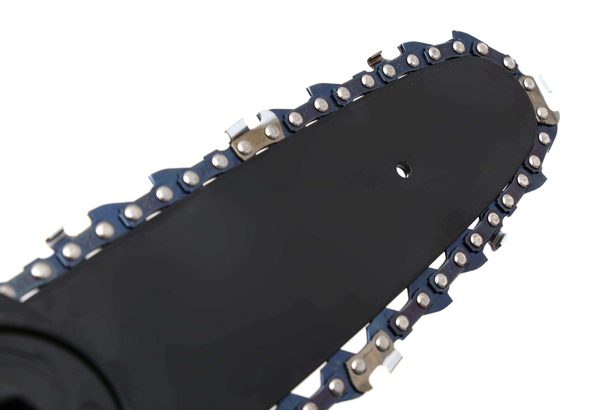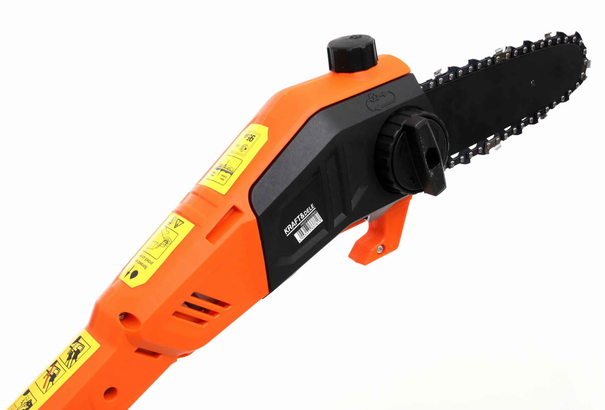 Głowica z piłą łańcuchową umożliwia zmianę kąta cięcia. Ułatwia to pracę w trudno dostępnych miejscach — np. przy cięciu gałęzi rosnących poziomo lub pod skosem.