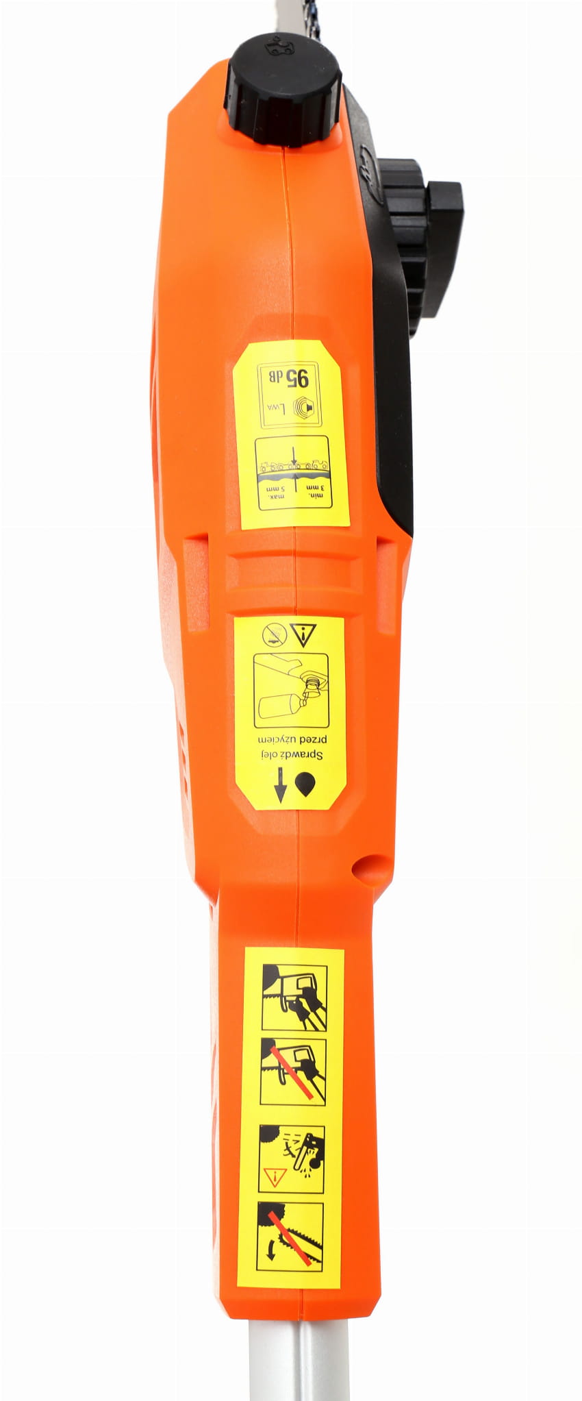 Łańcuch wyposażony jest w osłonę ochronną. Chroni ona dłonie operatora podczas pracy oraz zabezpiecza łańcuch podczas transportu i przechowywania narzędzia.