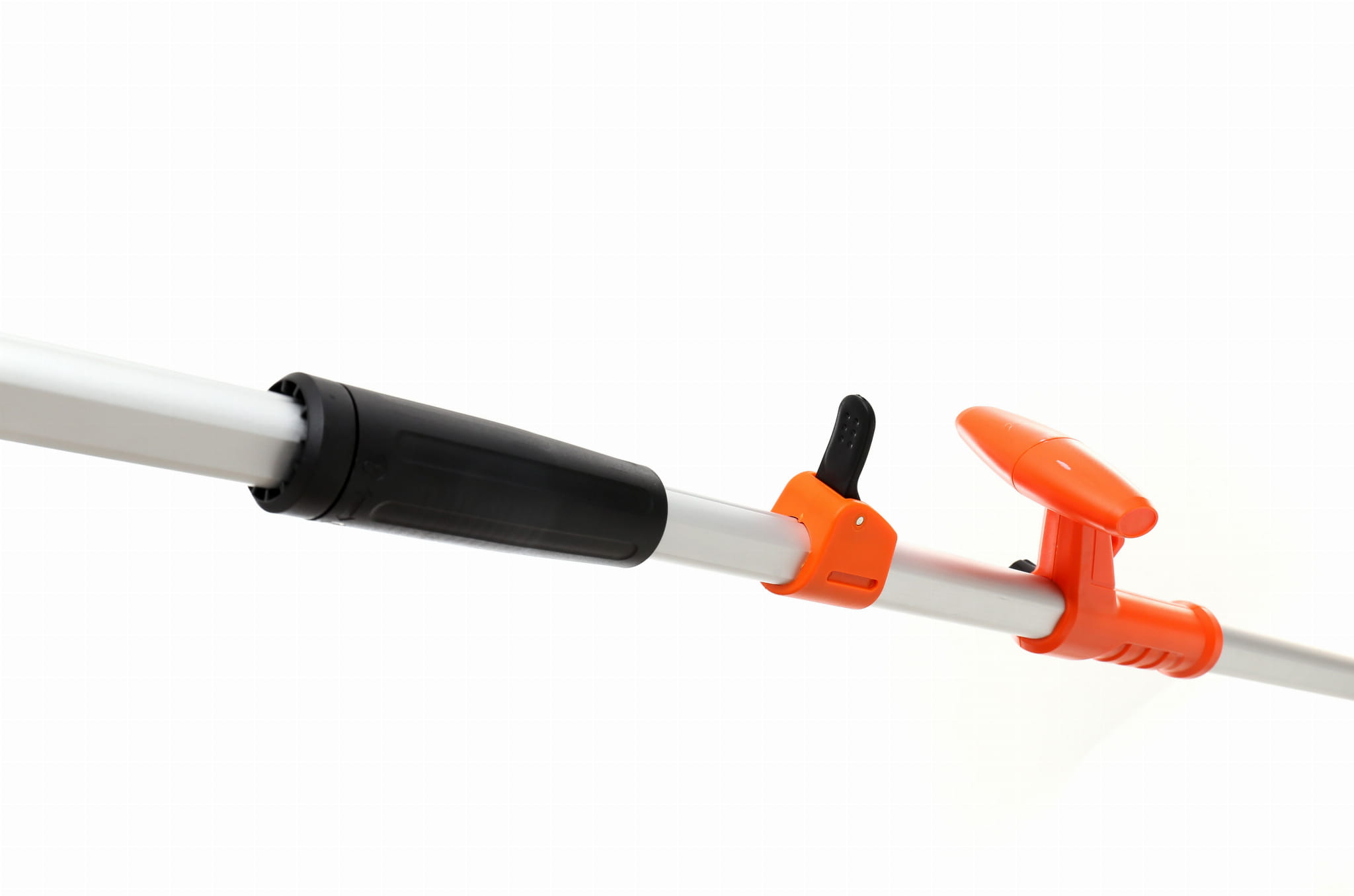 Długość ramienia można dostosować w zakresie od 230 do 300 cm. Pozwala to na dosięgnięcie gałęzi rosnących na znacznej wysokości bez użycia drabiny, co przekłada się bezpośrednio na bezpieczeństwo pracy.