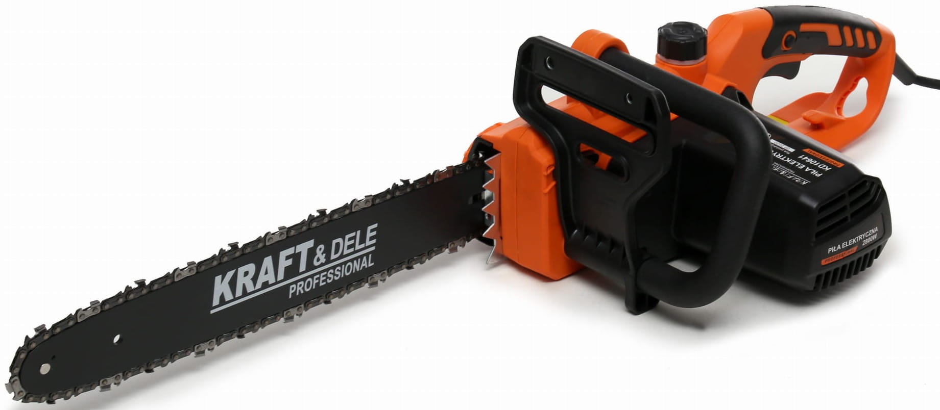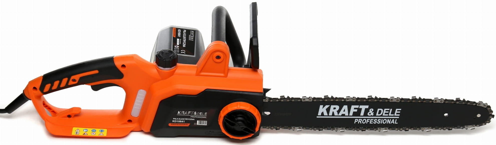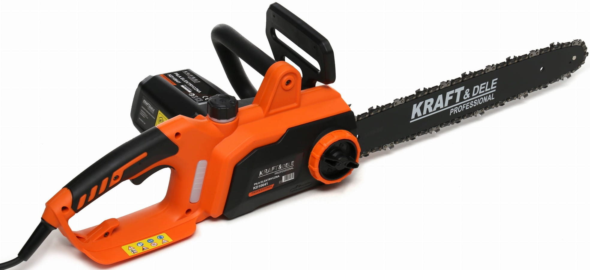 Piła elektryczna KD10641 2800W, prowadnica 16", łańcuch (57 ogniw, podziałka 3/8"), klucz do napinania łańcucha, osłona prowadnicy, instrukcja obsługi w języku polskim, oryginalne opakowanie.