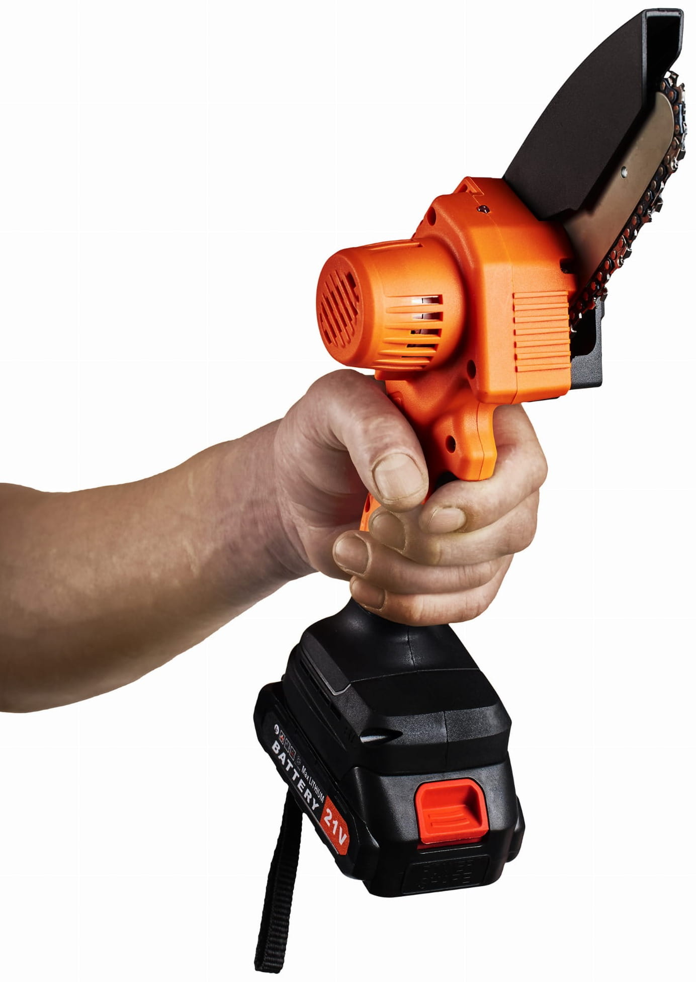 Kompaktowa mini pilarka akumulatorowa z prowadnicą 130 mm przeznaczona do przycinania gałęzi, prac ogrodowych i lekkich prac serwisowych. Bezprzewodowa konstrukcja umożliwia pracę w miejscach bez dostępu do sieci elektrycznej. Zestaw zawiera dwa akumulatory 1500 mAh, ładowarkę, okulary ochronne oraz walizkę transportową.