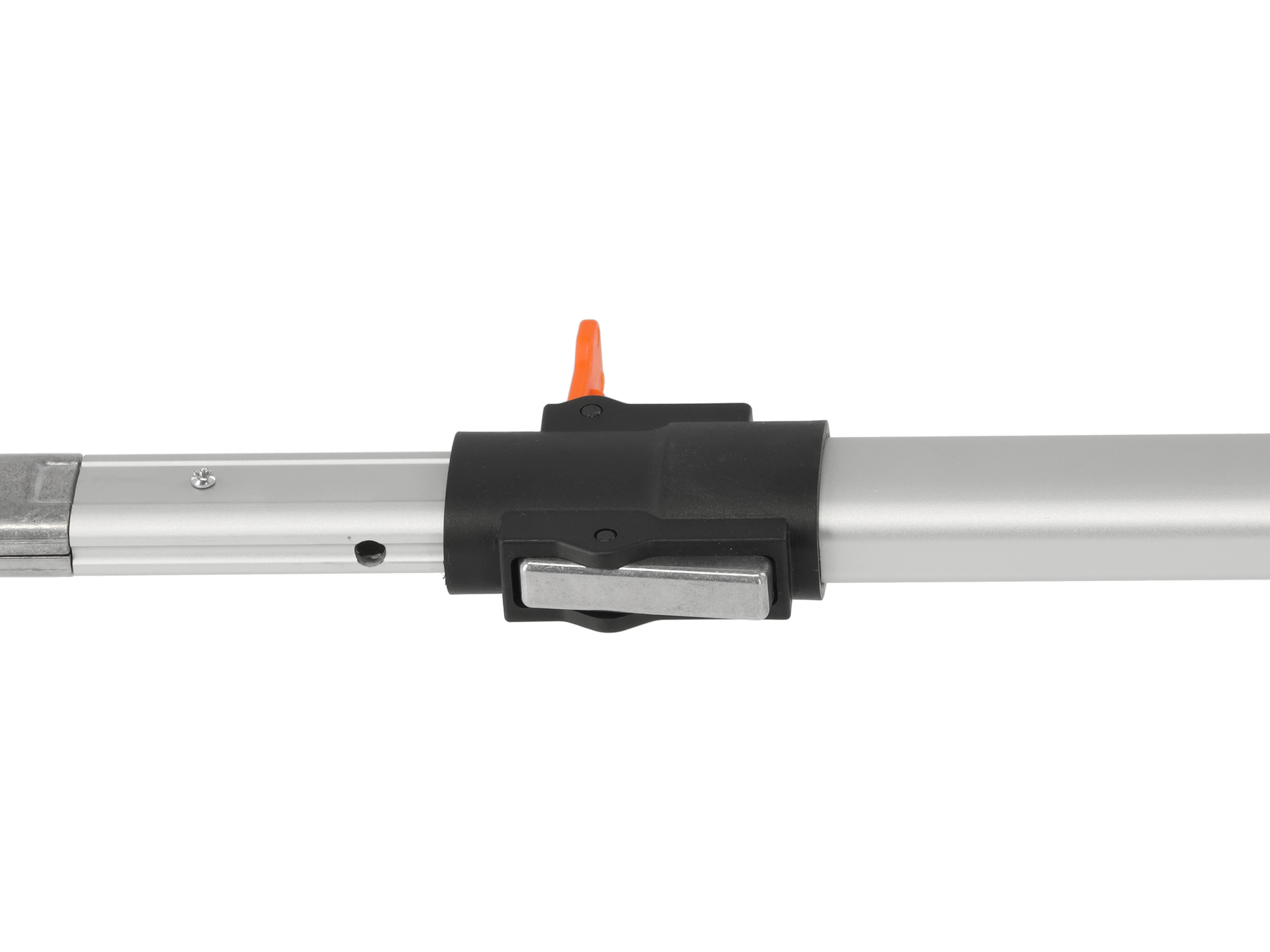 Regulacja w zakresie 160-250 cm pozwala dostosować długość narzędzia do wysokości cięcia. Stop aluminium zapewnia sztywność konstrukcji przy zachowaniu niskiej wagi 1100 g, co zmniejsza obciążenie rąk podczas pracy nad głową. Maksymalny zasięg roboczy wynosi około 4,5 metra, co eliminuje konieczność używania drabiny przy przycinaniu konarów do tej wysokości.