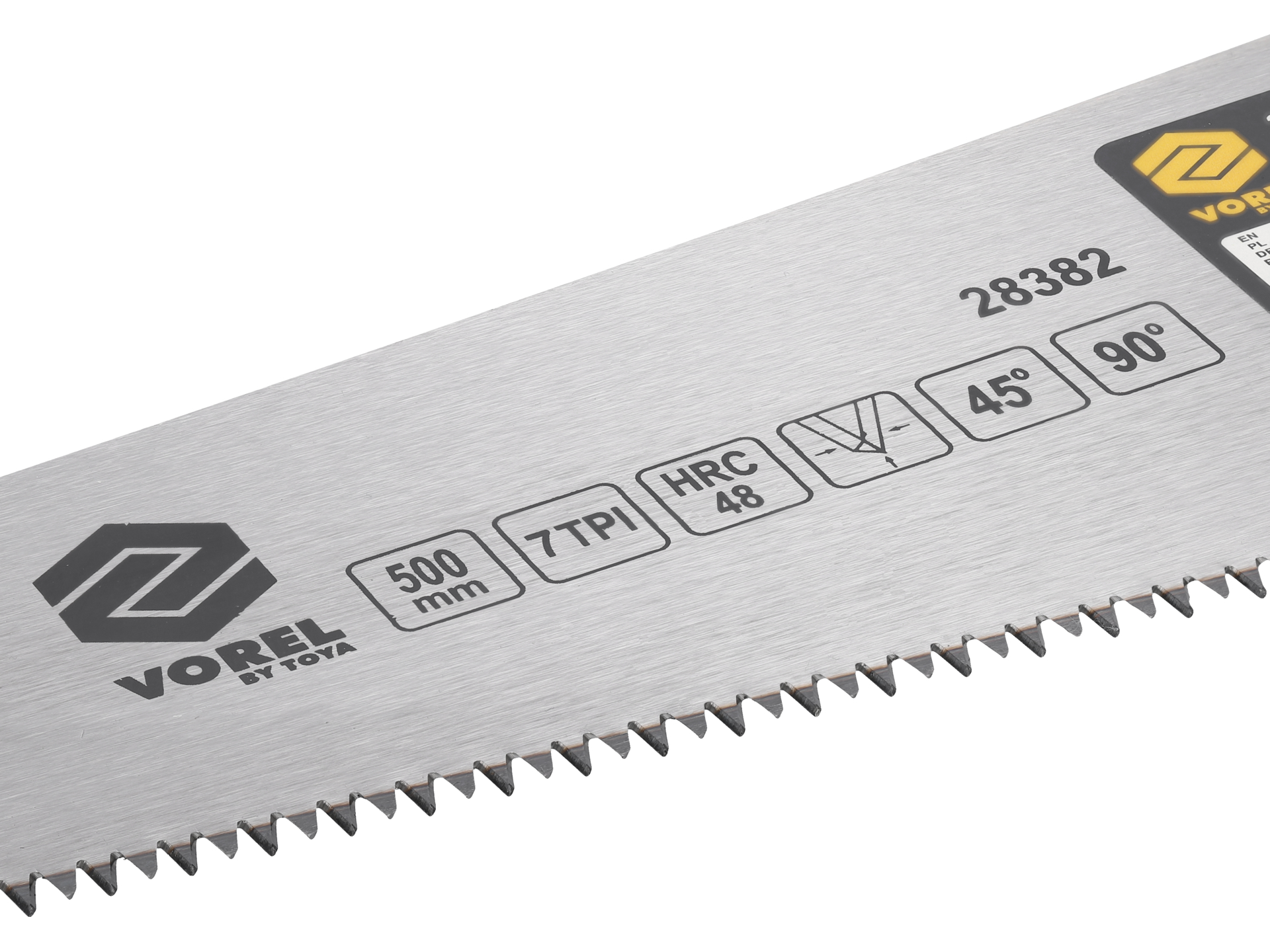 Potrzebujesz wydajnego i precyzyjnego narzędzia do cięcia? Piła płatnica 500mm VOREL 28382 z trójstronnie ostrzonymi i hartowanymi zębami to idealne rozwiązanie dla Ciebie. Zapewnia agresywne i szybkie cięcie w obu kierunkach, znacznie skracając czas pracy. Ergonomiczna rękojeść ułatwia trasowanie kątów, a hartowane zęby gwarantują długotrwałą wydajność.