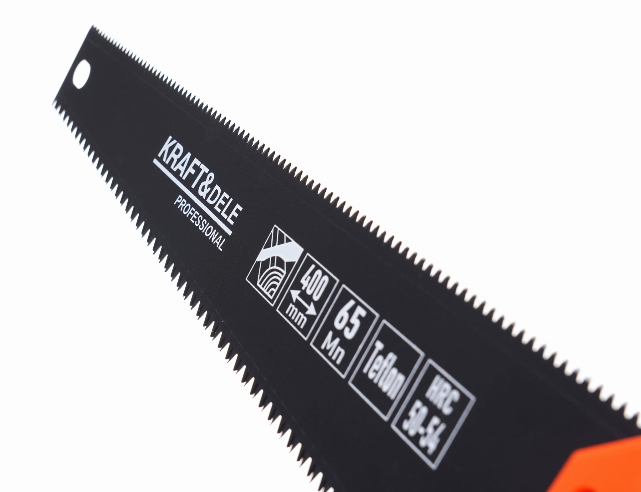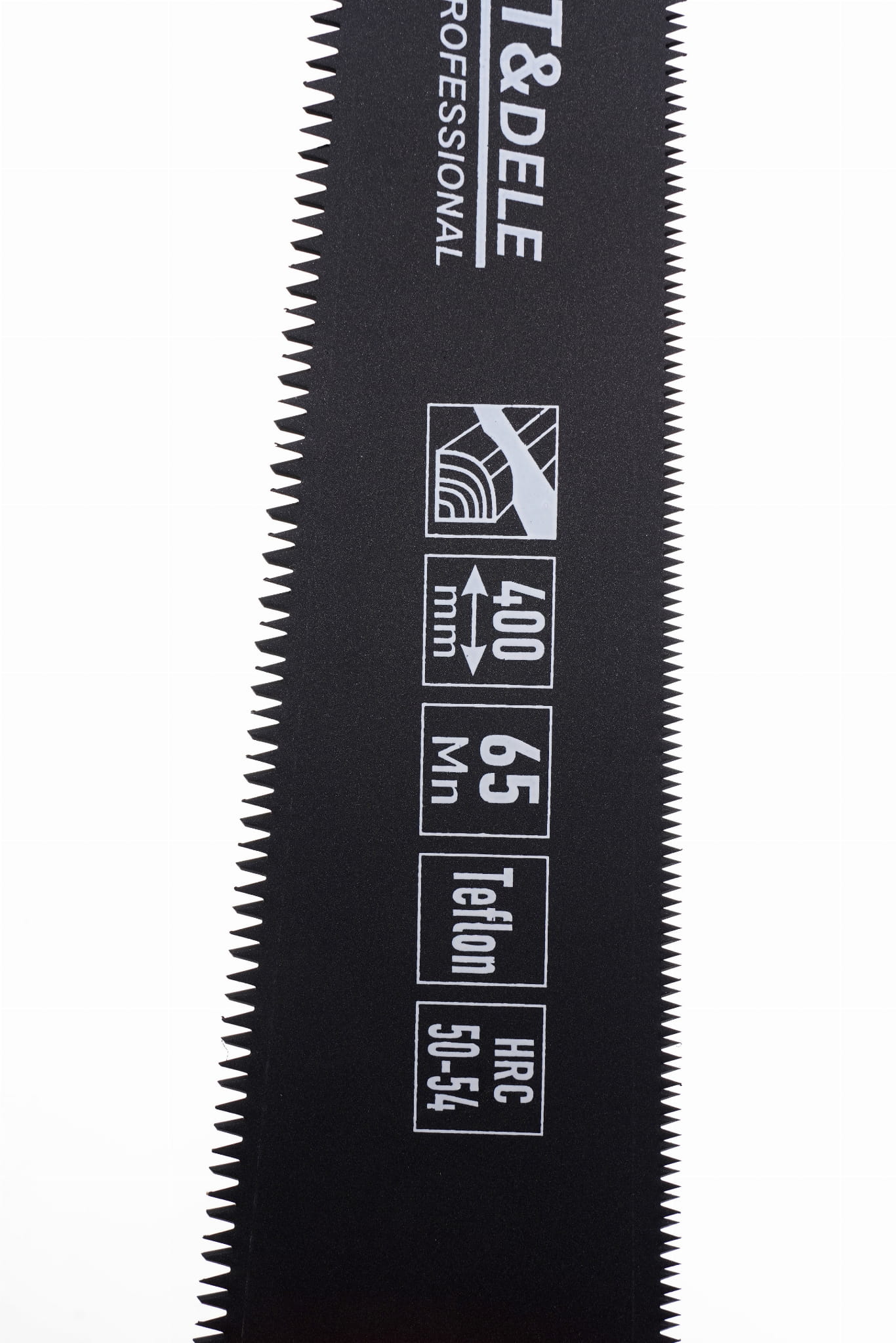 Dwustronna piła ręczna z brzeszczotem ze stali 65 Mn przeznaczona do ręcznego cięcia drewna litego, sklejki, płyt wiórowych oraz materiałów drewnopochodnych. Budowa dwustronna — z dwoma rzędami zębów o różnym uzębieniu — pozwala na pracę obiema krawędziami brzeszczotu, co wydłuża żywotność narzędzia.