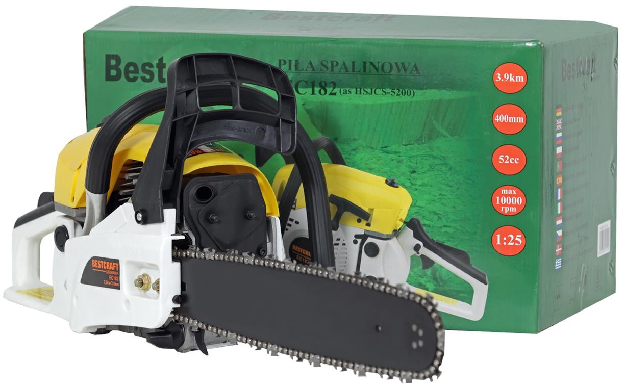 Wzmacniany wał korbowy, chromowany cylinder i solidne wykonanie pomagają utrzymać równą pracę piły spalinowej przy typowych obciążeniach.