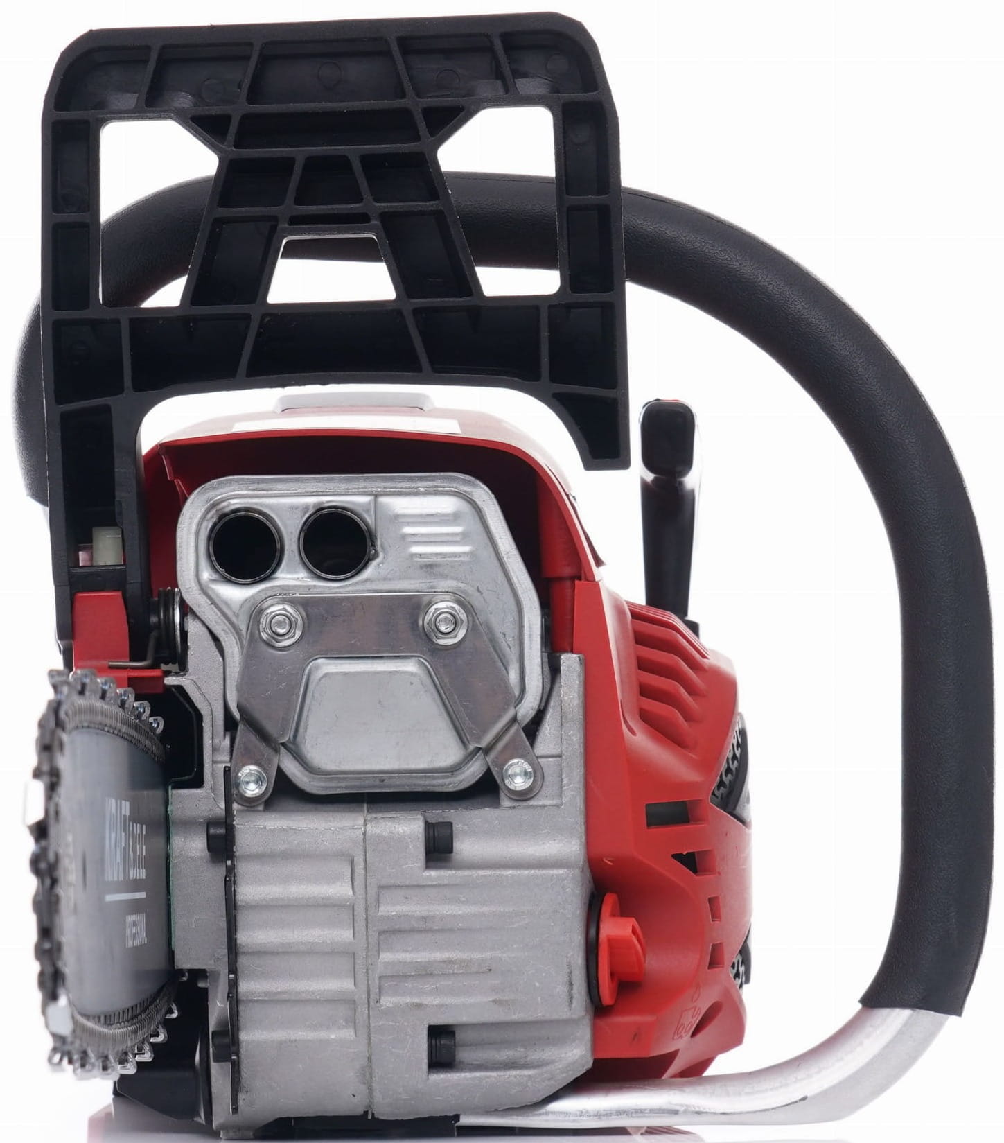 Silnik dwusuwowy chłodzony powietrzem osiąga 10 000 obr./min, co przekłada się na wydajne cięcie twardego drewna liściastego i iglastego. Pojemność 52 cc plasuje urządzenie w klasie pilarek półprofesjonalnych, zdolnych do pracy ciągłej przez dłuższy czas.