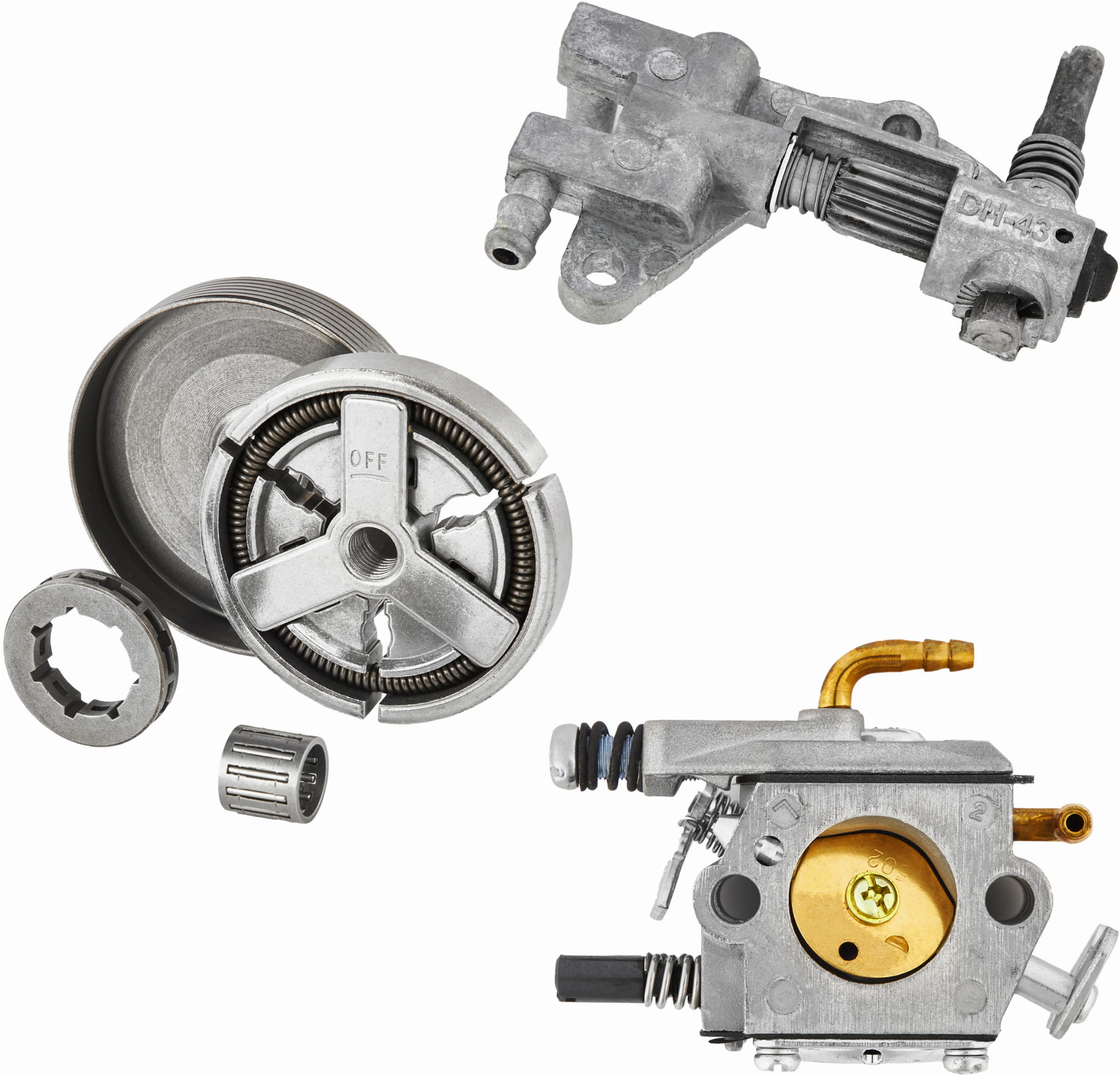 Jednocylindrowy silnik dwusuwowy o pojemności 45 cm³ osiąga moc maksymalną przy 8000 obr./min. Silniki dwusuwowe charakteryzują się prostą budową, niską masą własną i wysokim stosunkiem mocy do wagi — cechy istotne w narzędziach ręcznych używanych przez dłuższy czas.