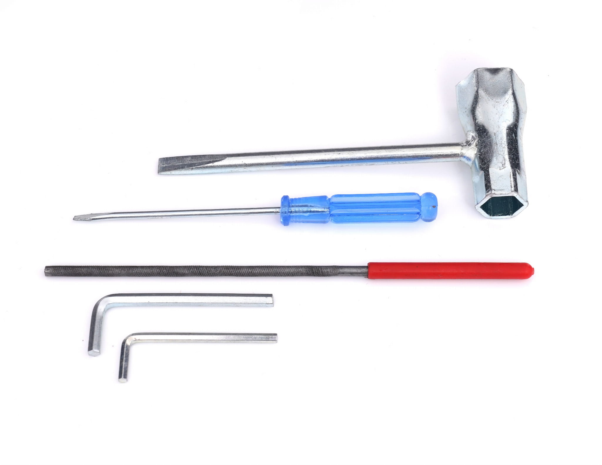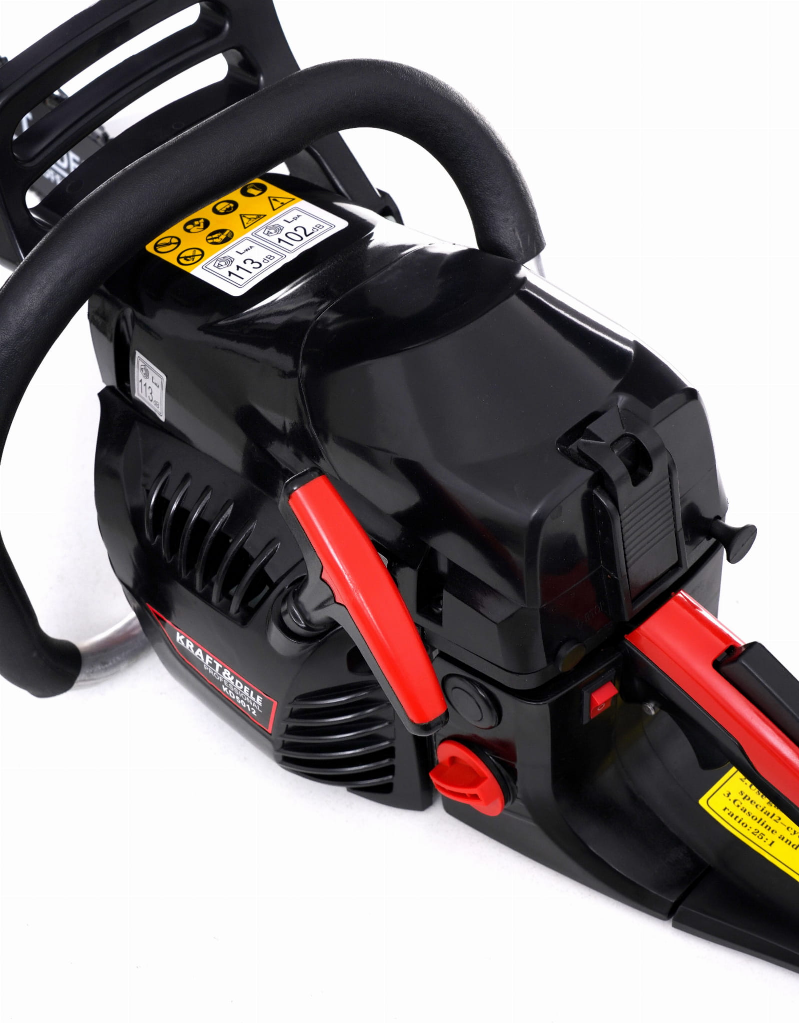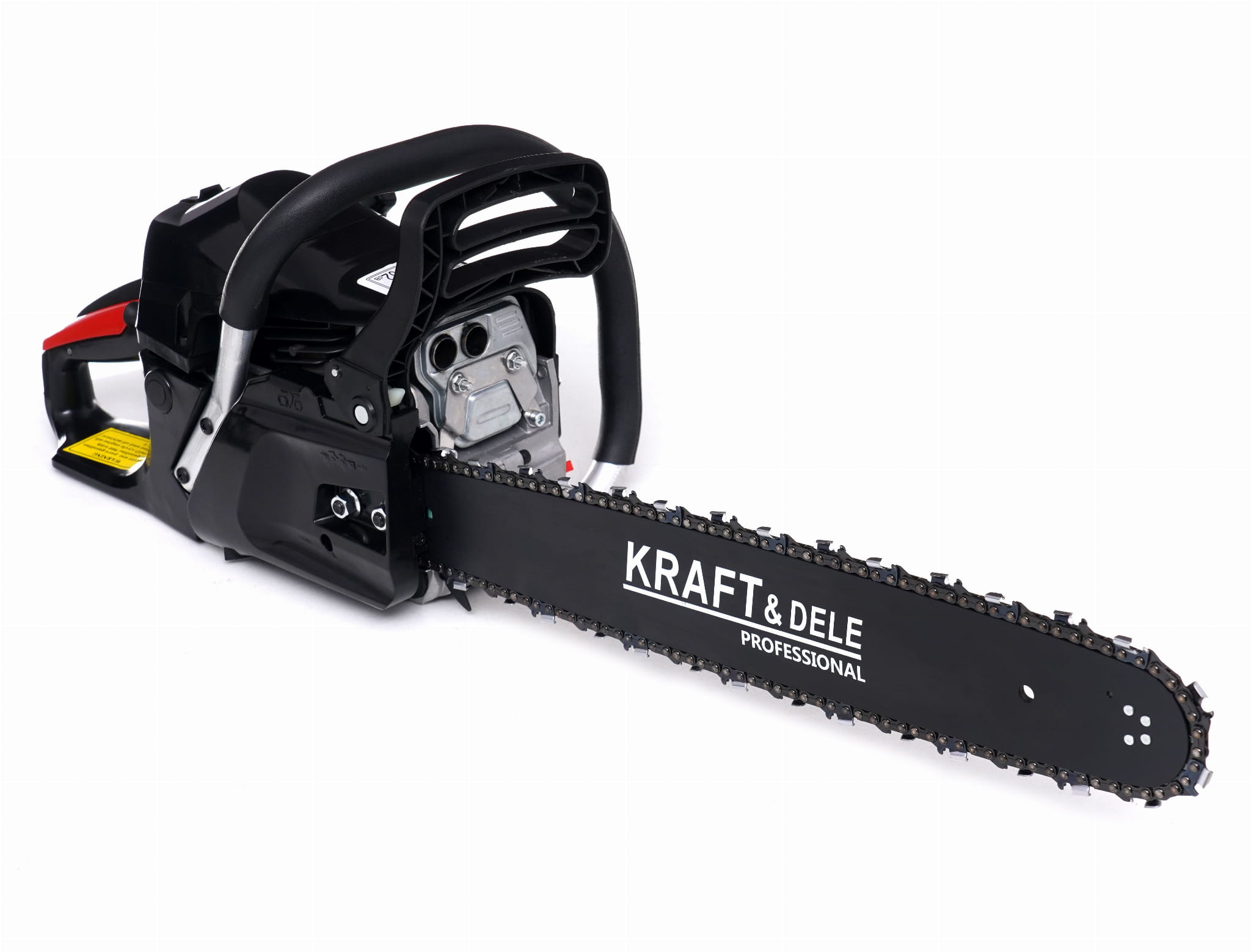 Piła łańcuchowa spalinowa KD5012, osłona prowadnicy, zestaw kluczy (klucz do świec, klucz do prowadnicy, wkrętak, imbusy), zbiornik do mieszania oleju z benzyną, pilnik, łańcuch, prowadnica 50 cm.