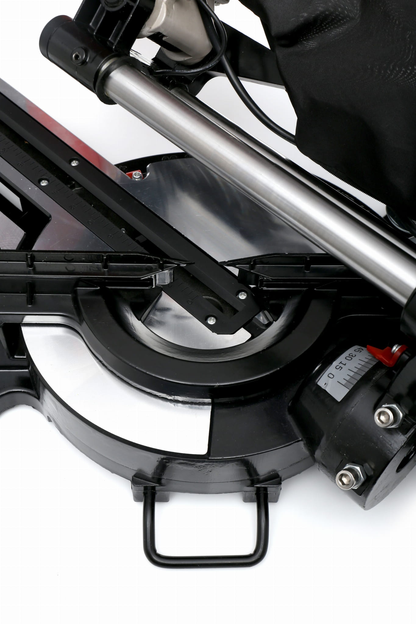 Moc 2200 W pozwala na swobodne cięcie twardszych gatunków drewna oraz elementów o większym przekroju bez przeciążania silnika. Prędkość obrotowa 4700 obr/min zapewnia gładką powierzchnię cięcia i skraca czas pracy przy seryjnym przycinaniu elementów.