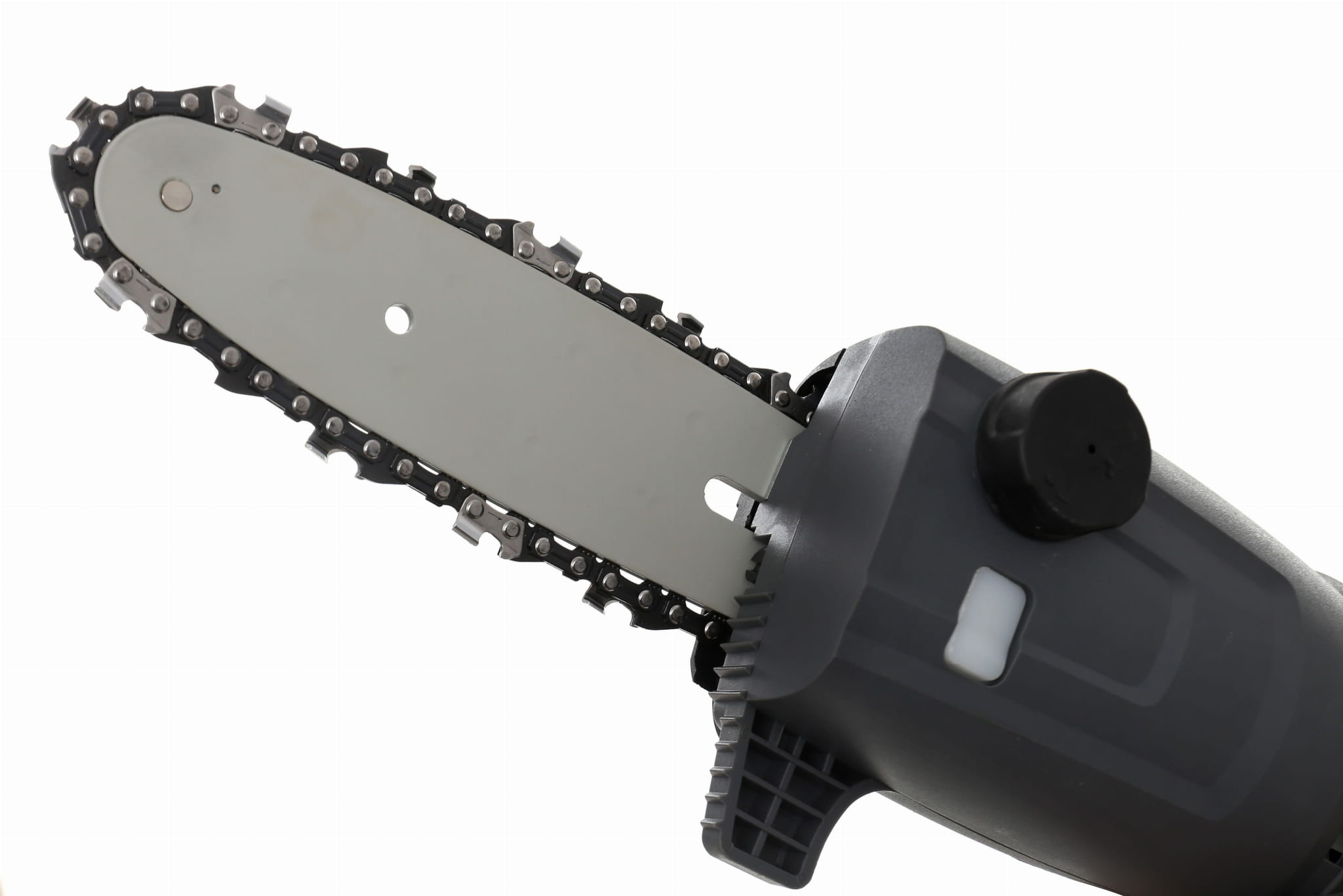 Urządzenie wyposażone jest w osłonę chroniącą dłonie operatora przed kontaktem z łańcuchem podczas pracy. Stanowi podstawowy element bezpieczeństwa przy pracy na wysokości.