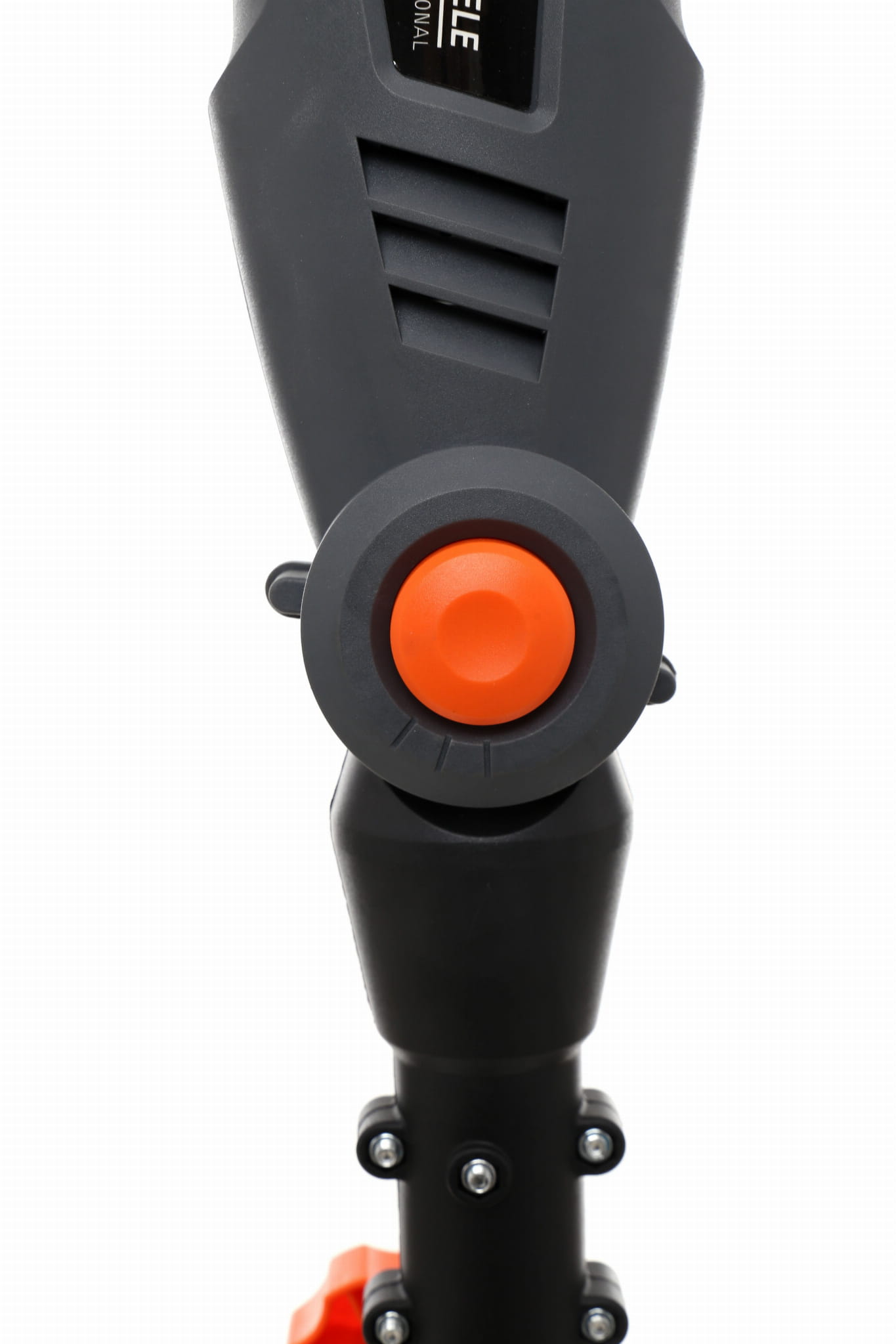 Wysięgnik pozwala na sięgnięcie do gałęzi rosnących do 2,4 m nad ziemią. Możliwość regulacji kąta głowicy tnącej ułatwia pracę przy gałęziach rosnących pod różnym nachyleniem, bez zmiany pozycji operatora.