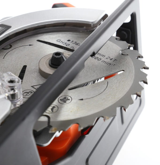 Osłona tarczy wykonana z aluminium odlewanego pod ciśnieniem zapewnia odporność na uszkodzenia mechaniczne. Uchwyty pokryte materiałem HIGH GRIP ograniczają ryzyko poślizgnięcia podczas pracy, szczególnie istotne przy cięciach ukośnych wymagających pewnego prowadzenia narzędzia.