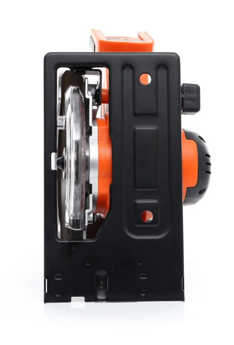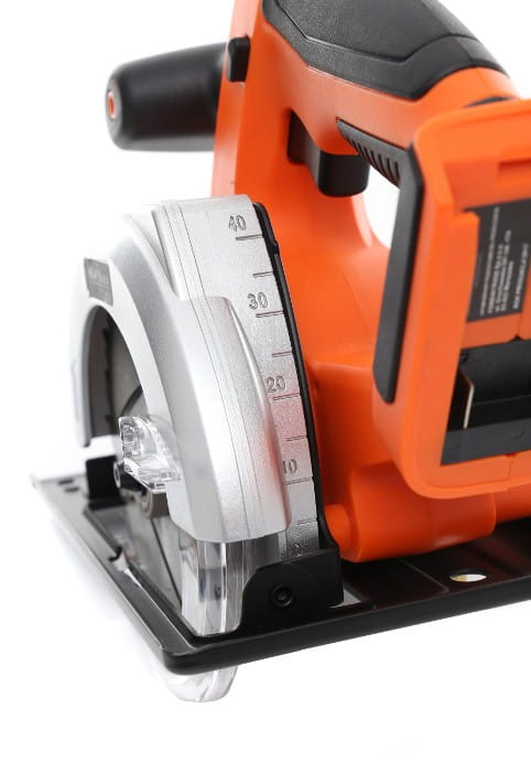 Podstawa pilarki umożliwia ustawienie kąta nachylenia tarczy w zakresie 0–50°, co pozwala na wykonywanie cięć ukośnych. Głębokość cięcia przy ustawieniu 45° wynosi 28 mm, przy 90° — 38 mm. Regulacja odbywa się za pomocą skali na podstawie.