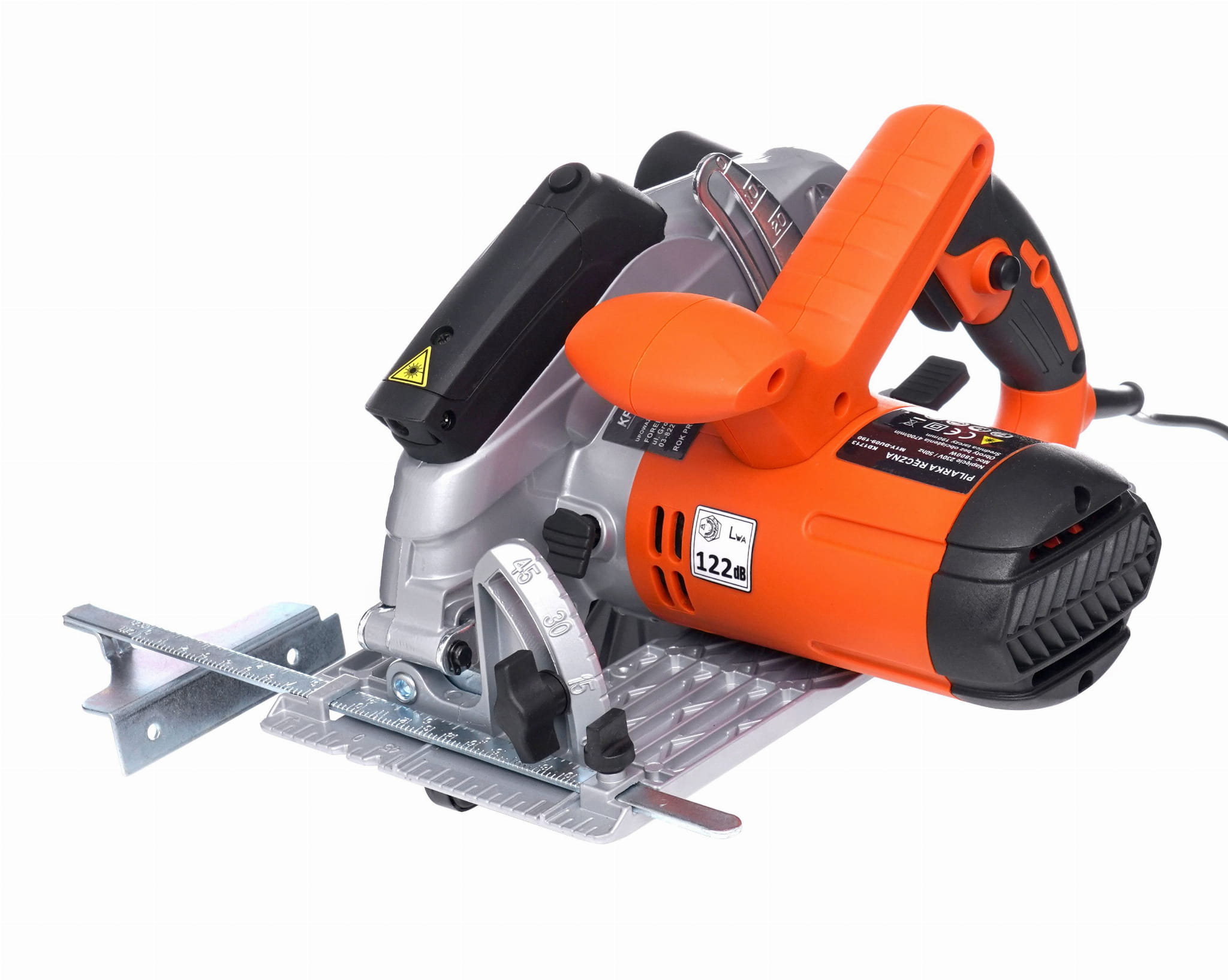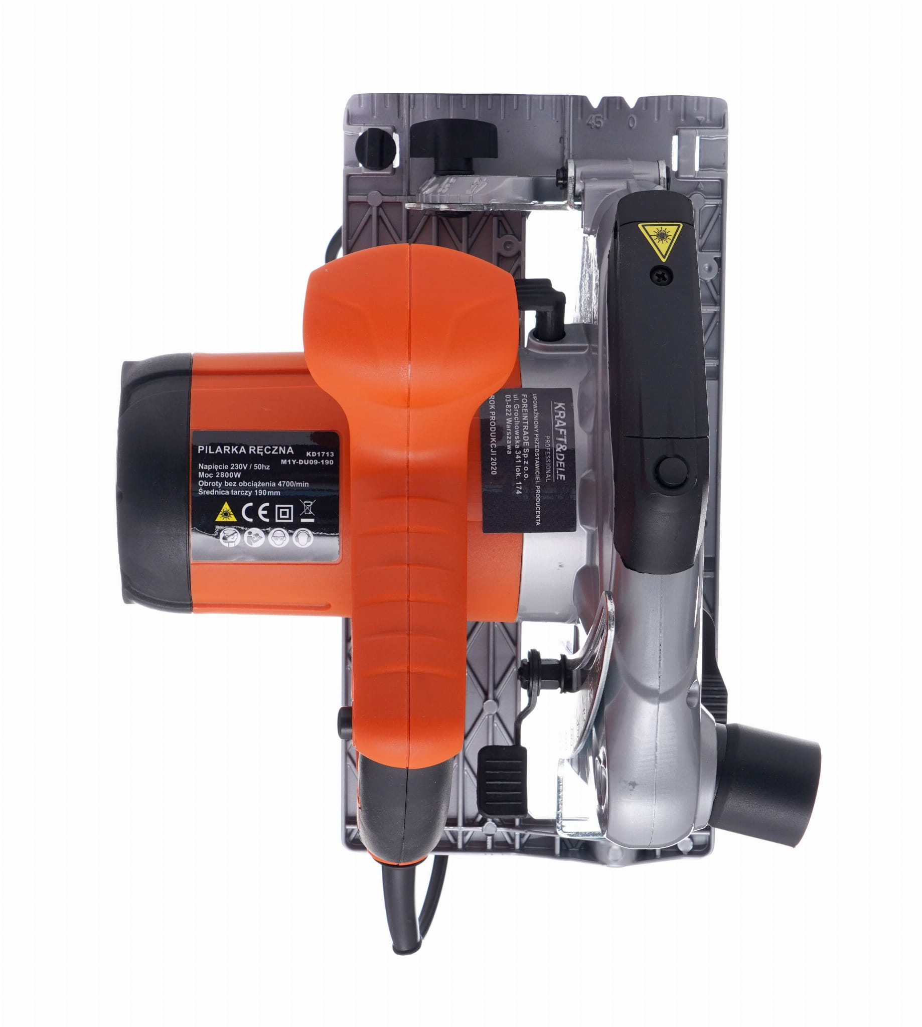 KD1713 to elektryczna pilarka tarczowa ręczna przeznaczona do cięcia wzdłużnego i poprzecznego drewna oraz materiałów drewnopochodnych. Urządzenie pracuje z silnikiem o mocy 2800W i wyposażone jest w laserowy wskaźnik linii cięcia, który ułatwia prowadzenie narzędzia wzdłuż zaznaczonej linii.