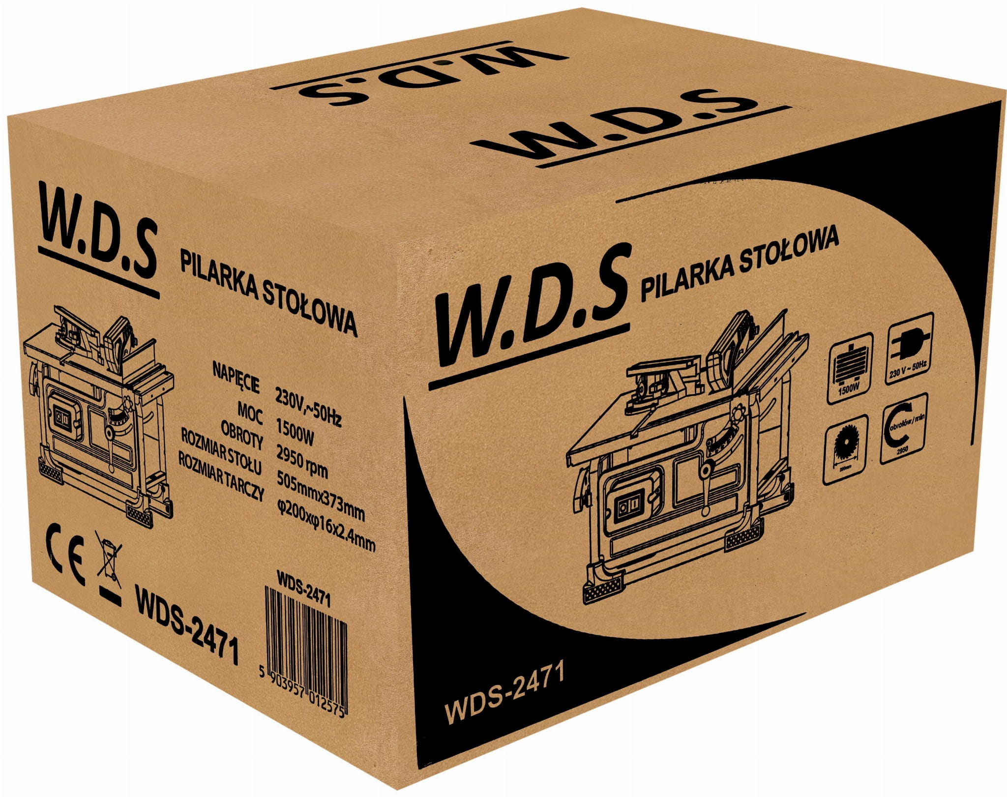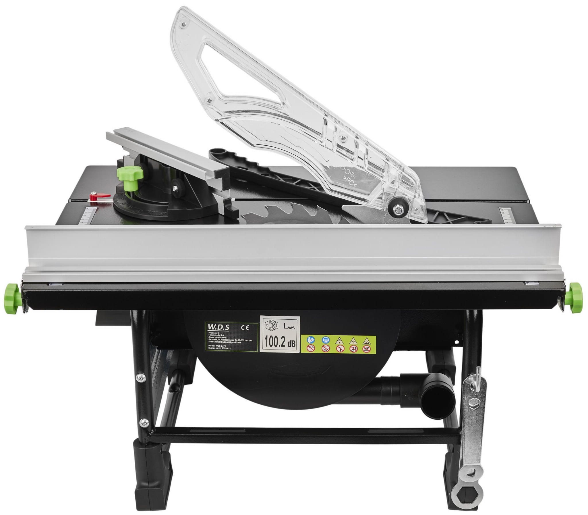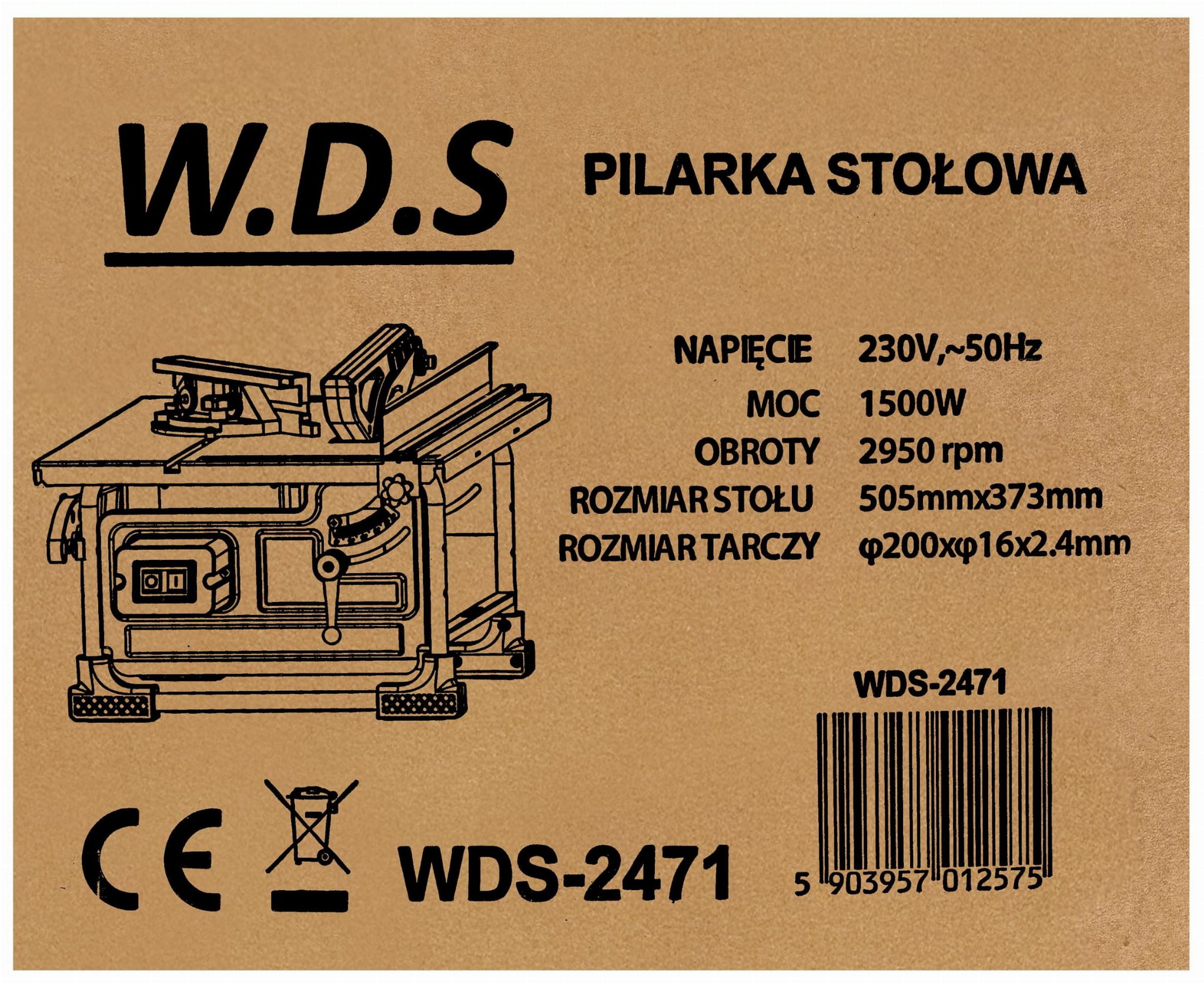 Pilarka stołowa WDS2471 Pilarka stołowa WDS2471 to wydajne i niezawodne narzędzie do precyzyjnego cięcia drewna, desek, sklejki oraz innych materiałów drewnopochodnych. Dzięki dużej mocy 1500 W i wysokiej prędkości obrotowej urządzenie zapewnia szybkie, czyste i dokładne cięcia zarówno w warunkach warsztatowych, jak i domowych. Wyposażona w solidny i ergonomiczny blat roboczy, pilarka gwarantuje stabilność oraz bezpieczeństwo pracy. Praktyczny system odprowadzania wiórów umożliwia podłączenie odkurzacza, co znacząco ułatwia utrzymanie czystości podczas cięcia. Urządzenie posiada możliwość stosowania różnych tarcz, co pozwala nie tylko na obróbkę drewna, ale również cięcie metali i tworzyw sztucznych. Przesuwny ogranicznik oraz wbudowana miarka umożliwiają precyzyjne i powtarzalne docinanie elementów, a regulowana prowadnica z blokadą do kąta 90° pozwala na zachowanie idealnego kąta cięcia. WDS2471 to pilarka, która łączy wysoką wydajność, bezpieczeństwo oraz wygodę użytkowania – idealna dla majsterkowiczów i profesjonalistów poszukujących niezawodnego sprzętu do cięcia. CECHY PRODUKTU: ✅ Mocny silnik 1500 W zapewniający szybkie i precyzyjne cięcie ✅ Blat roboczy o dużej powierzchni dla stabilnej pracy i wygodnego prowadzenia materiału ✅ System odprowadzania wiórów z możliwością podłączenia odkurzacza ✅ Możliwość stosowania różnych tarcz – do drewna, metalu i tworzyw sztucznych ✅ Przesuwny ogranicznik i wbudowana miarka do powtarzalnych cięć ✅ Regulowana prowadnica z blokadą do kąta 90° i miarką ✅ Stabilna konstrukcja zapewniająca bezpieczeństwo i długą żywotność DANE TECHNICZNE: ⚙ Model WDS2471 ⚙ Napięcie / Częstotliwość 230 V ~ 50 Hz ⚙ Moc znamionowa 1500 W ⚙ Prędkość bez obciążenia 2950 obr./min ⚙ Rozmiar tarczy Φ200 × Φ16 × 2.4 mm ⚙ Liczba zębów 24 Z ⚙ Wymiary stołu 505 × 373 mm ⚙ Maks. wysokość cięcia (90°) 45 mm ⚙ Poziom ciśnienia akustycznego LpA 87,2 dB(A) ±3 dB(A) ⚙ Poziom mocy akustycznej LwA 100,2 dB(A) ±3 dB(A) SKŁAD PRODUKTU: ✅ Pilarka stołowa WDS2471 ✅ Tarcza widiowa 200 mm ✅ Prowadnica boczna ✅ Popychacz ✅ Klucze do obsługi ✅ Instrukcja obsługi w języku polskim ✅ Gwarancja 12 miesięcy ✅ Paragon lub Faktura VAT