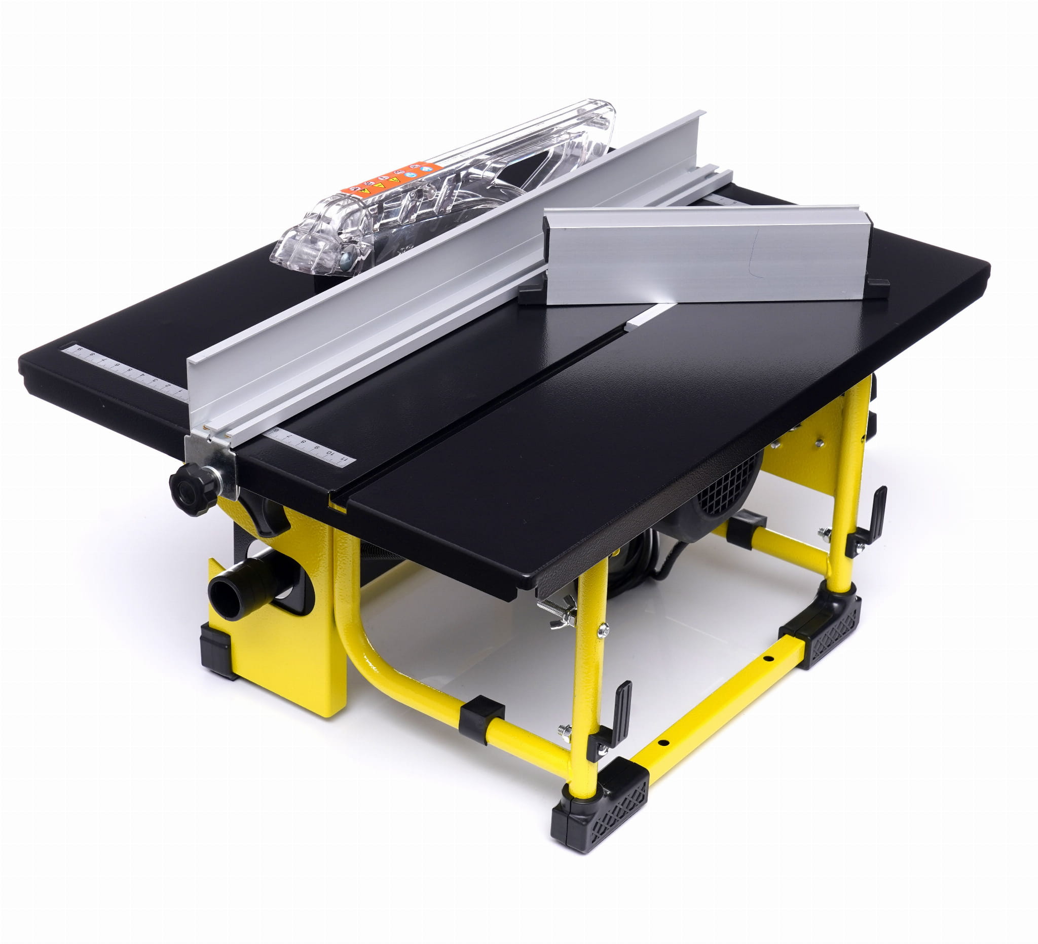 Powierzchnia stołu o wymiarach 505 x 373mm umożliwia stabilne prowadzenie materiałów o standardowych szerokościach. Kompaktowe gabaryty urządzenia (waga 12,5kg) pozwalają na przenoszenie piły między stanowiskami pracy.