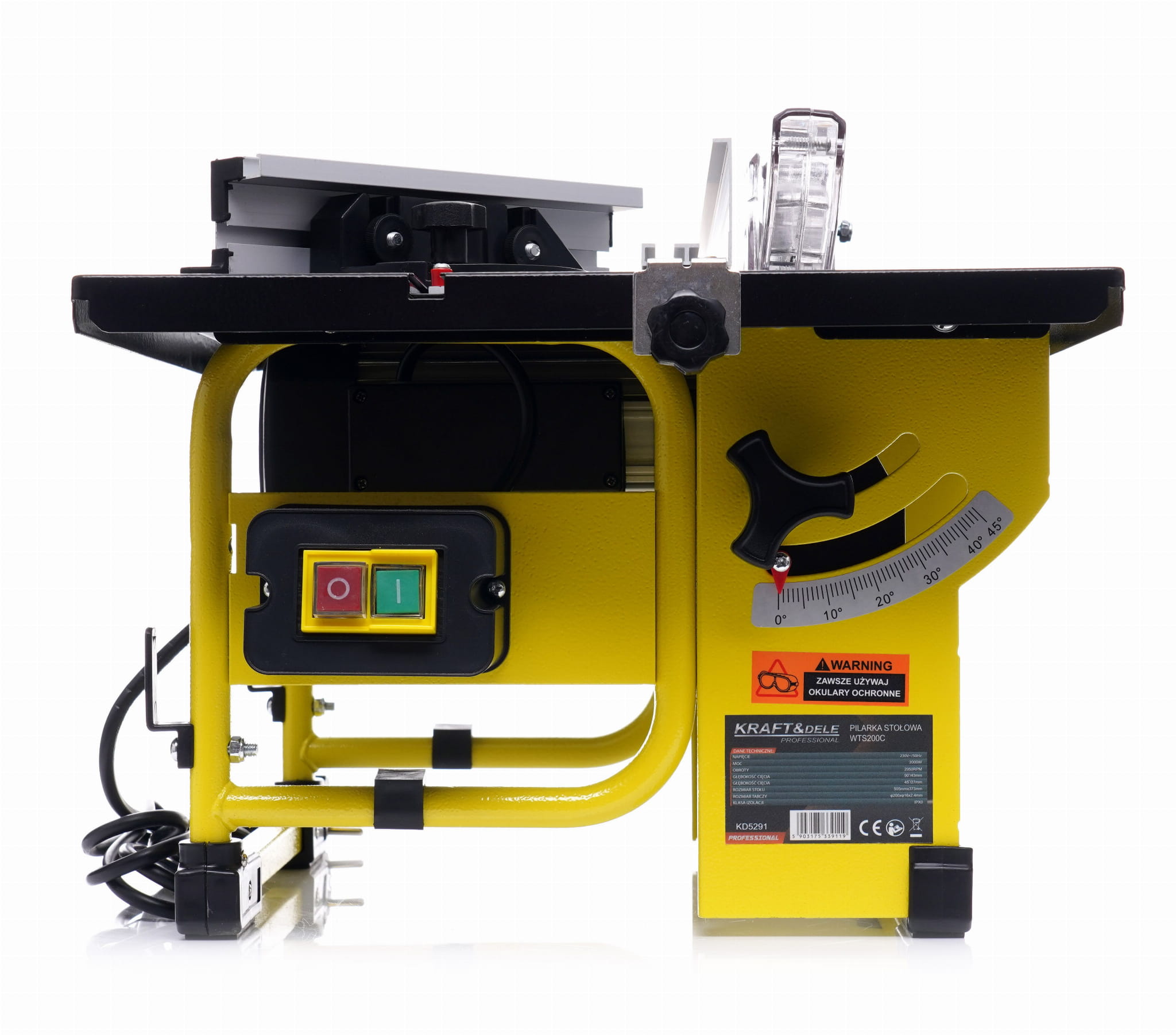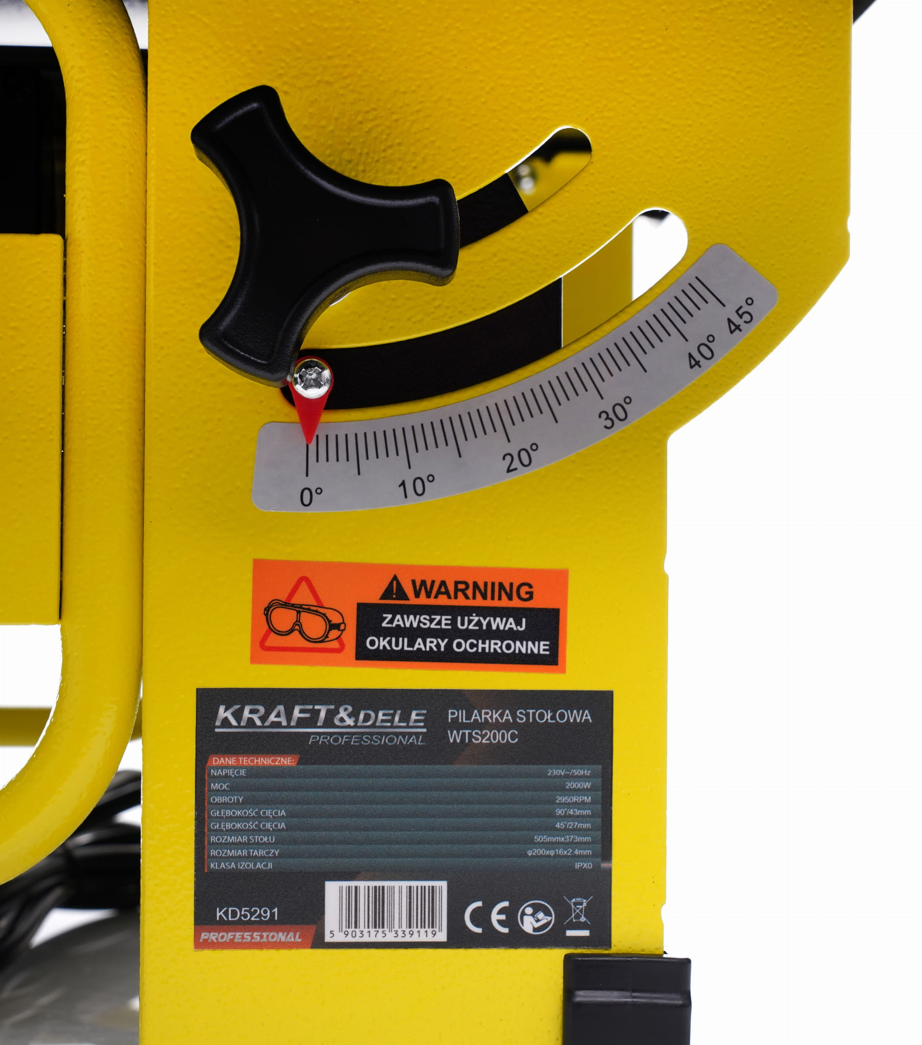 Pilarka stołowa KD5291 to urządzenie przeznaczone do precyzyjnego cięcia drewna, materiałów drewnopochodnych oraz tworzyw sztucznych. Silnik o mocy 2000W i tarcza tnąca o średnicy 200mm umożliwiają pracę z materiałami o grubości do 43mm przy cięciu prostym i do 27mm przy cięciu ukośnym pod kątem 45°.