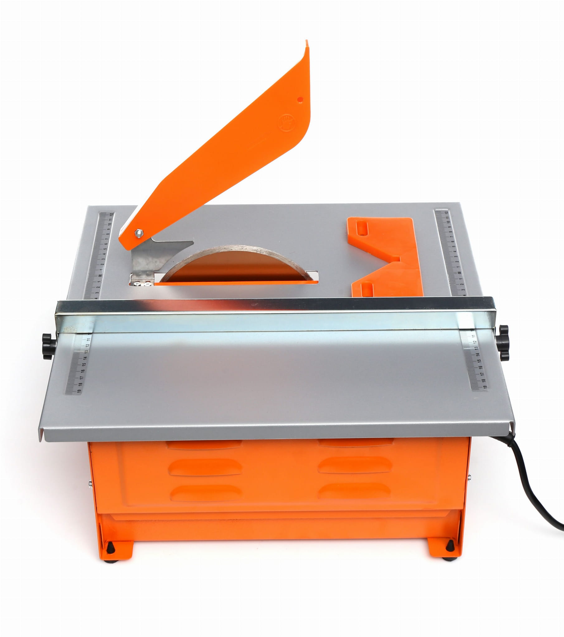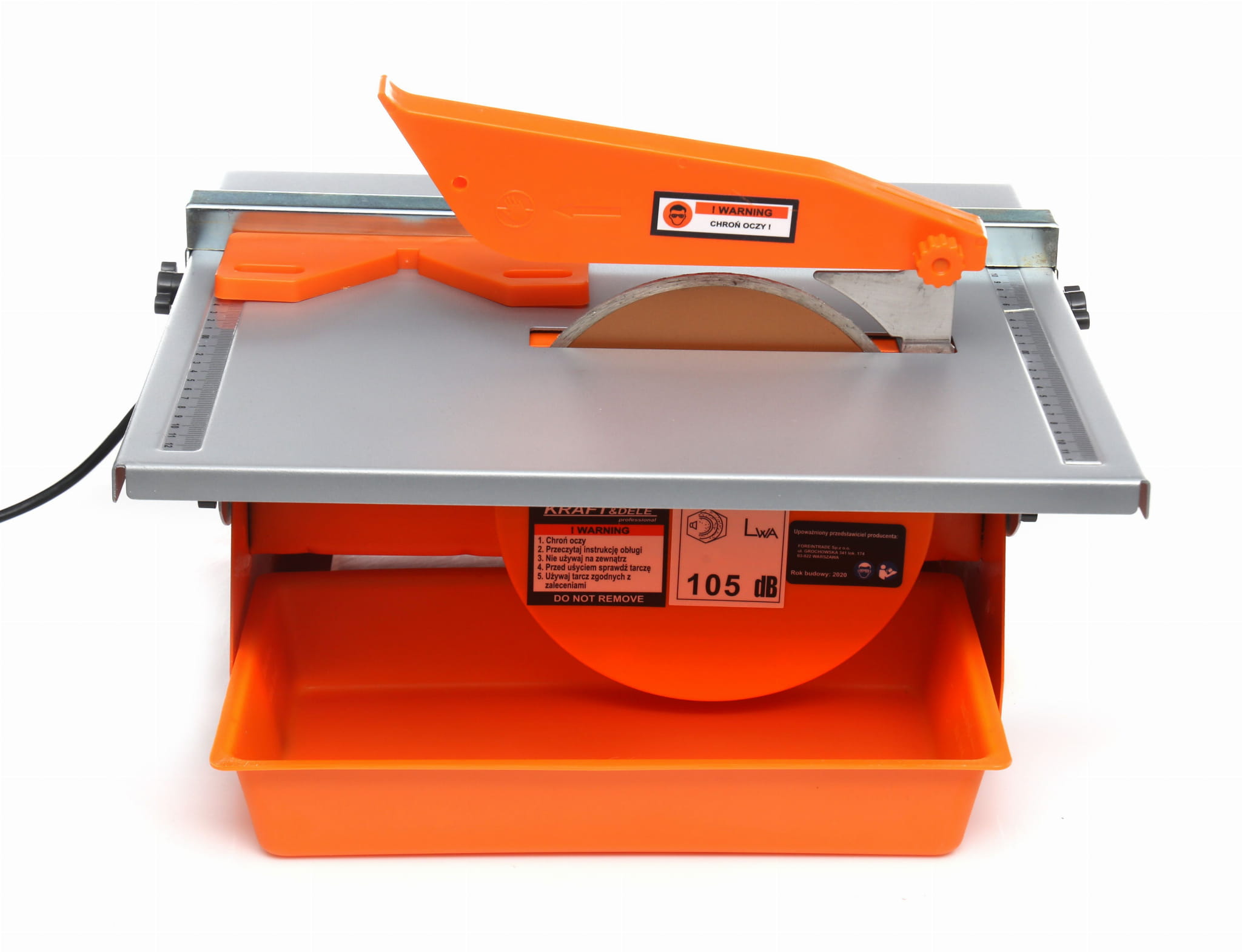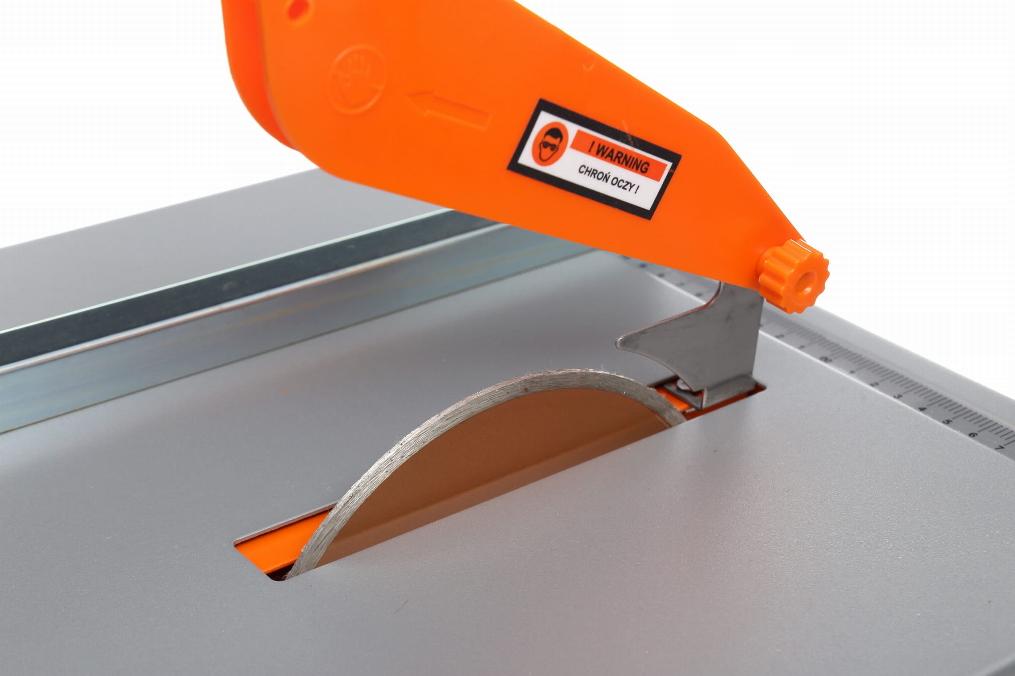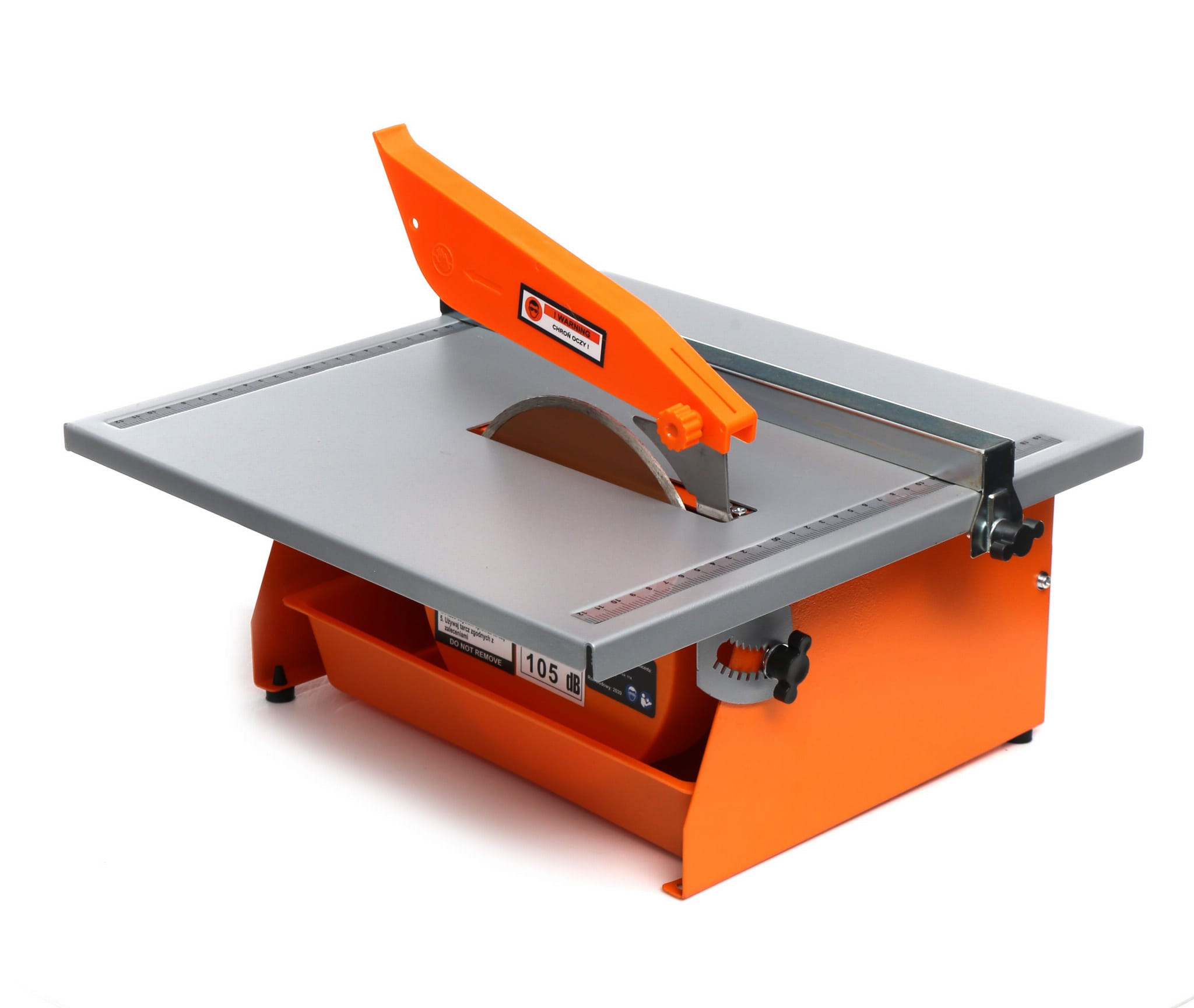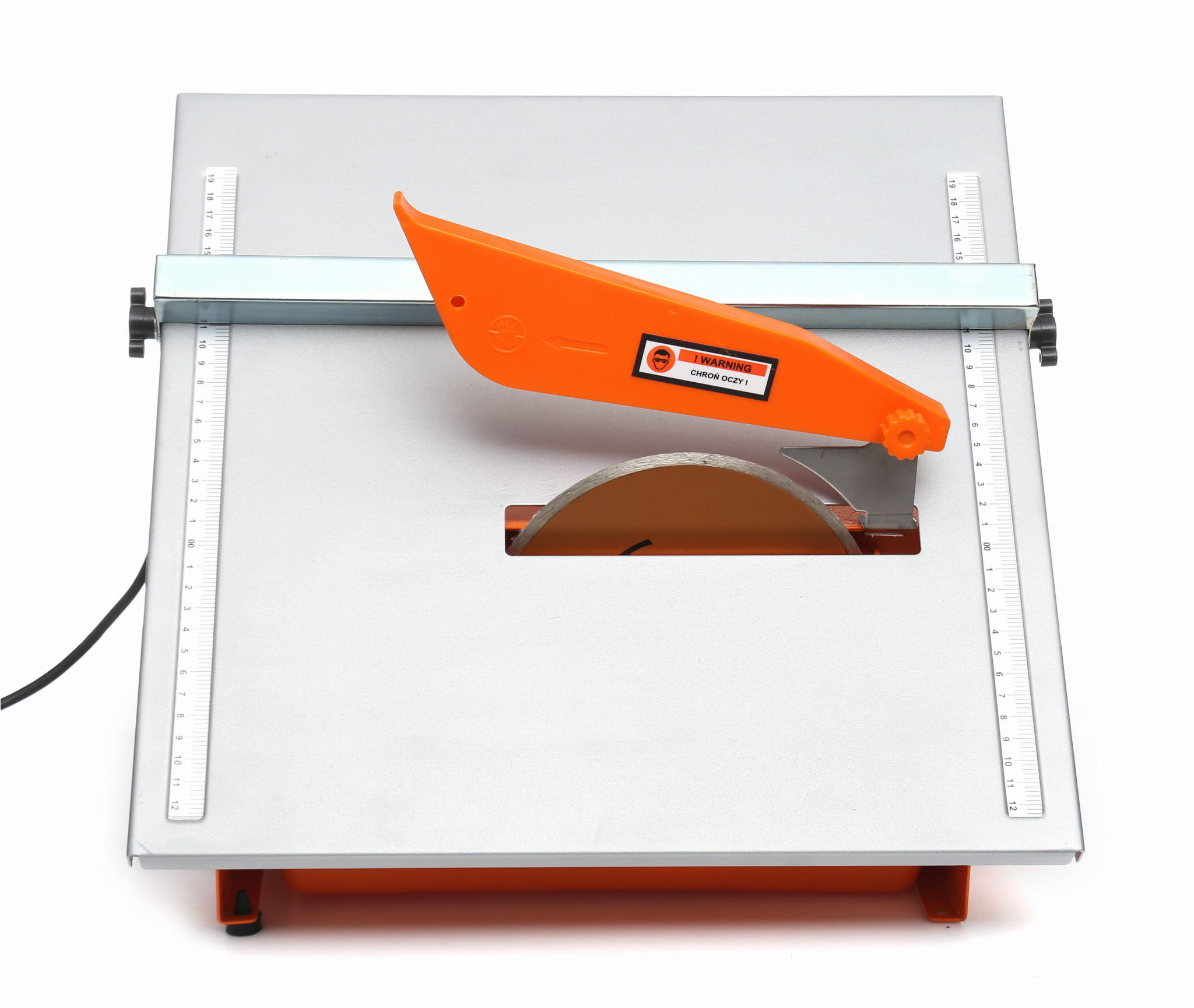 Blat roboczy wykonany ze stali nierdzewnej o wymiarach 395×385mm jest odporny na działanie wody chłodzącej stosowanej podczas cięcia ceramiki. Materiał nie koroduje ani nie odkształca się pod wpływem wilgoci, co przekłada się na trwałość i stabilność powierzchni roboczej.