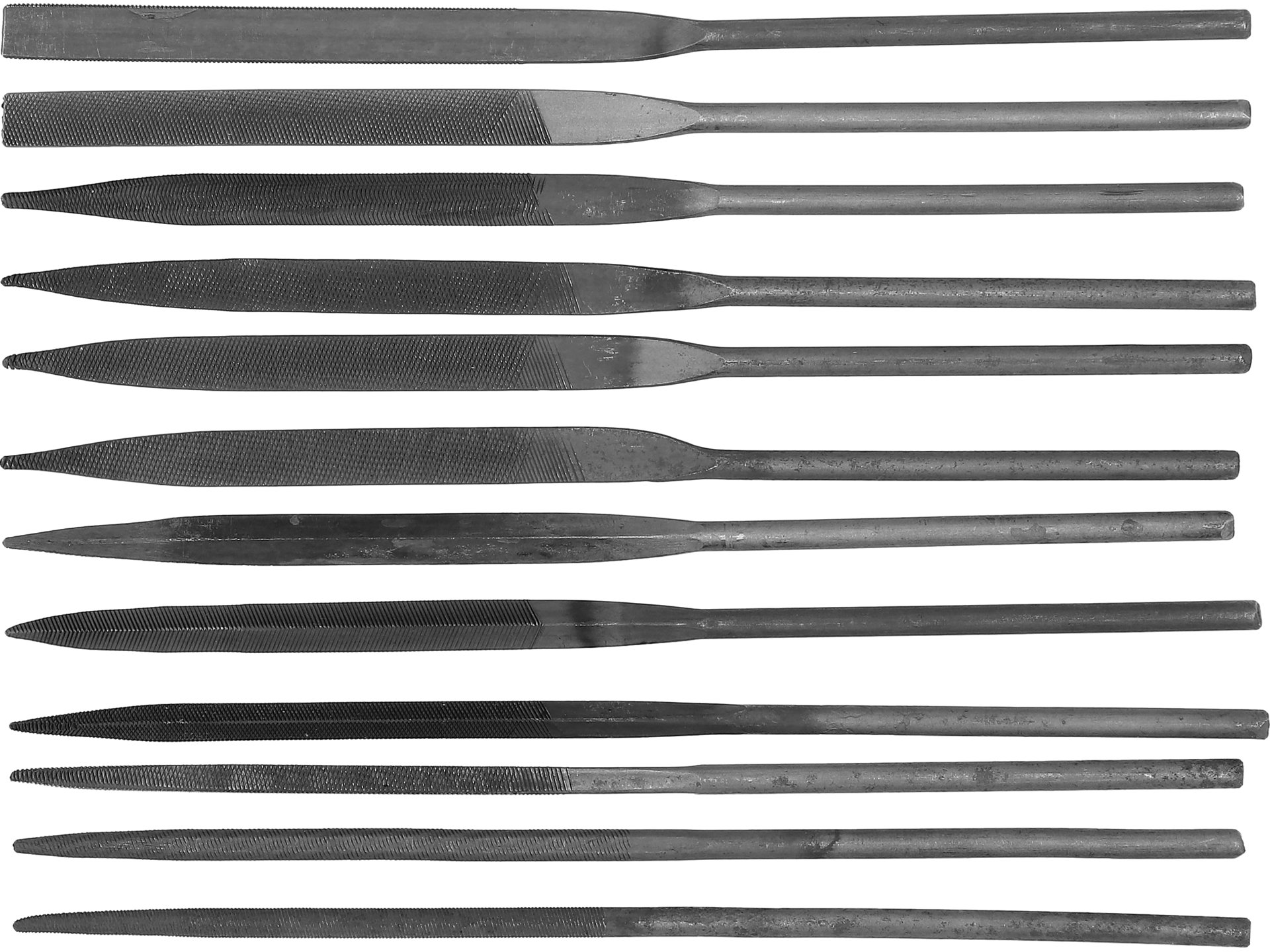 | Pilniki do metalu iglaki | VOREL | 12 szt. | płaski, półokrągły, okrągły, trójkątny, mieczowy, nożowy, zbieżne, równoległe |