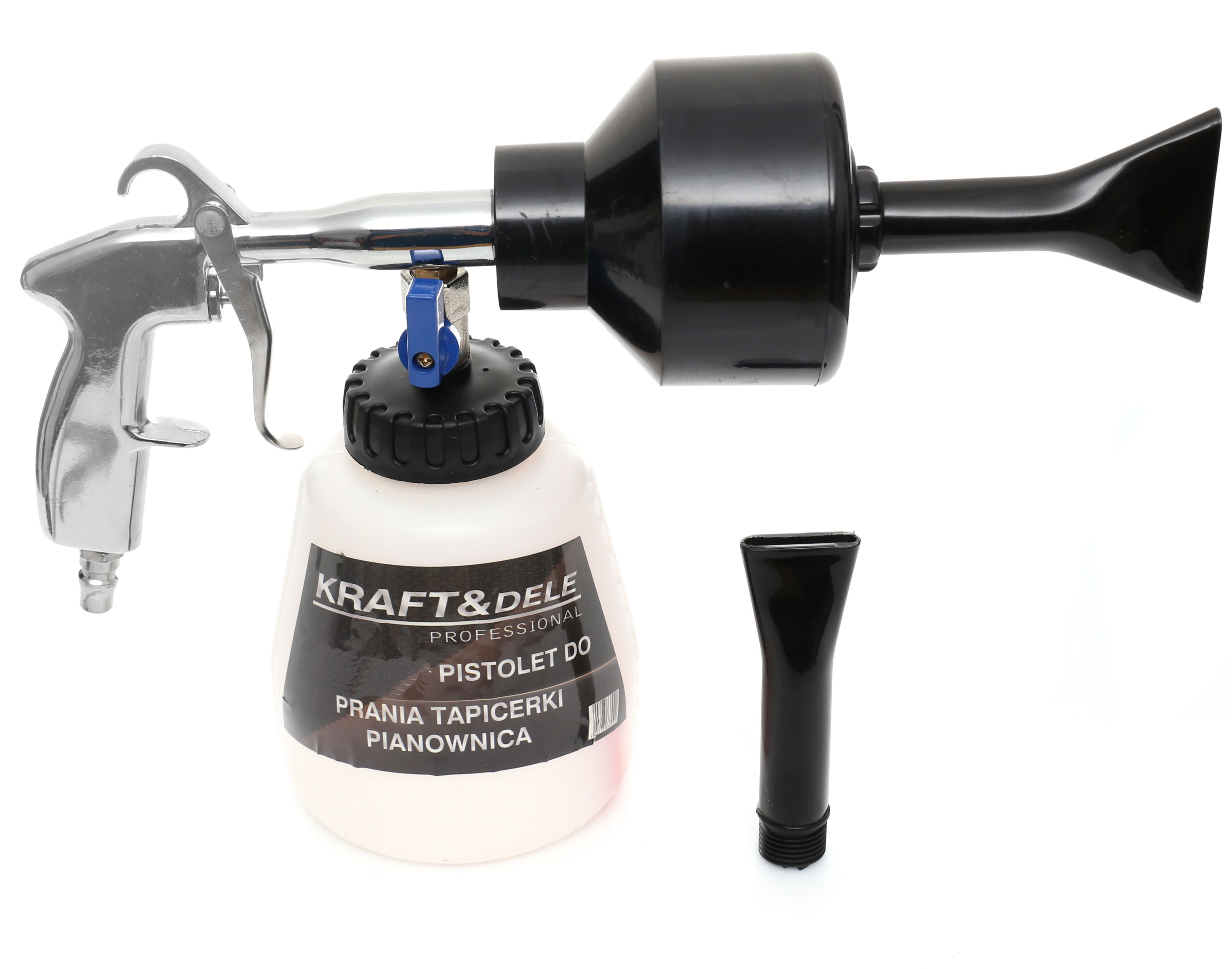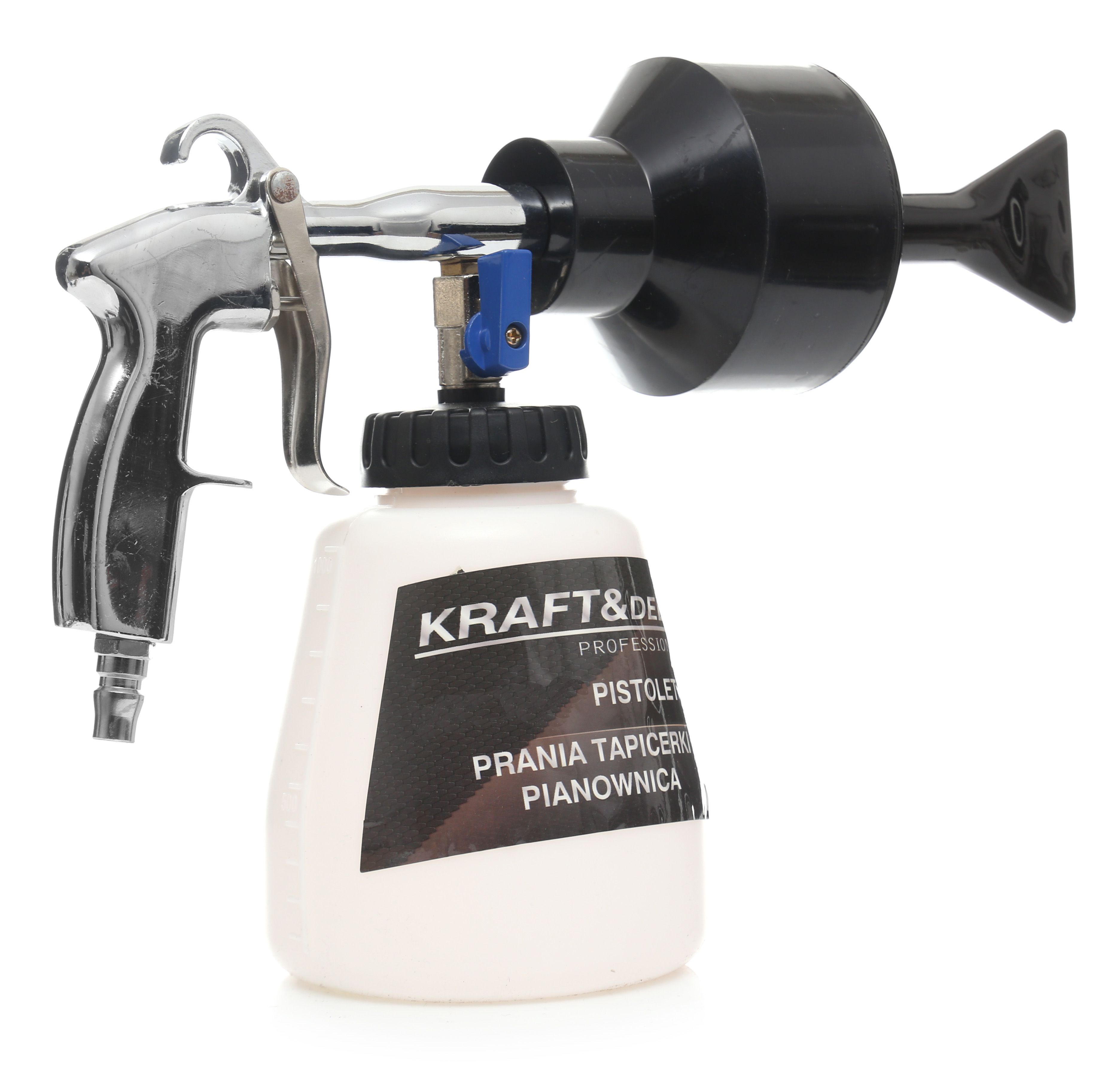 Pistolet do prania tapicerki pianownica KD10378 / KD10378 / KRAFT&DELE to pneumatyczna pianownica do czyszczenia na mokro karoserii i wnętrza samochodu, w tym dywaników, tapicerki i tworzyw. Jeśli szukasz narzędzia z regulacją chemii i powietrza oraz dwoma dyszami w zestawie, model KD10378 będzie rozsądnym wyborem do codziennej pracy.