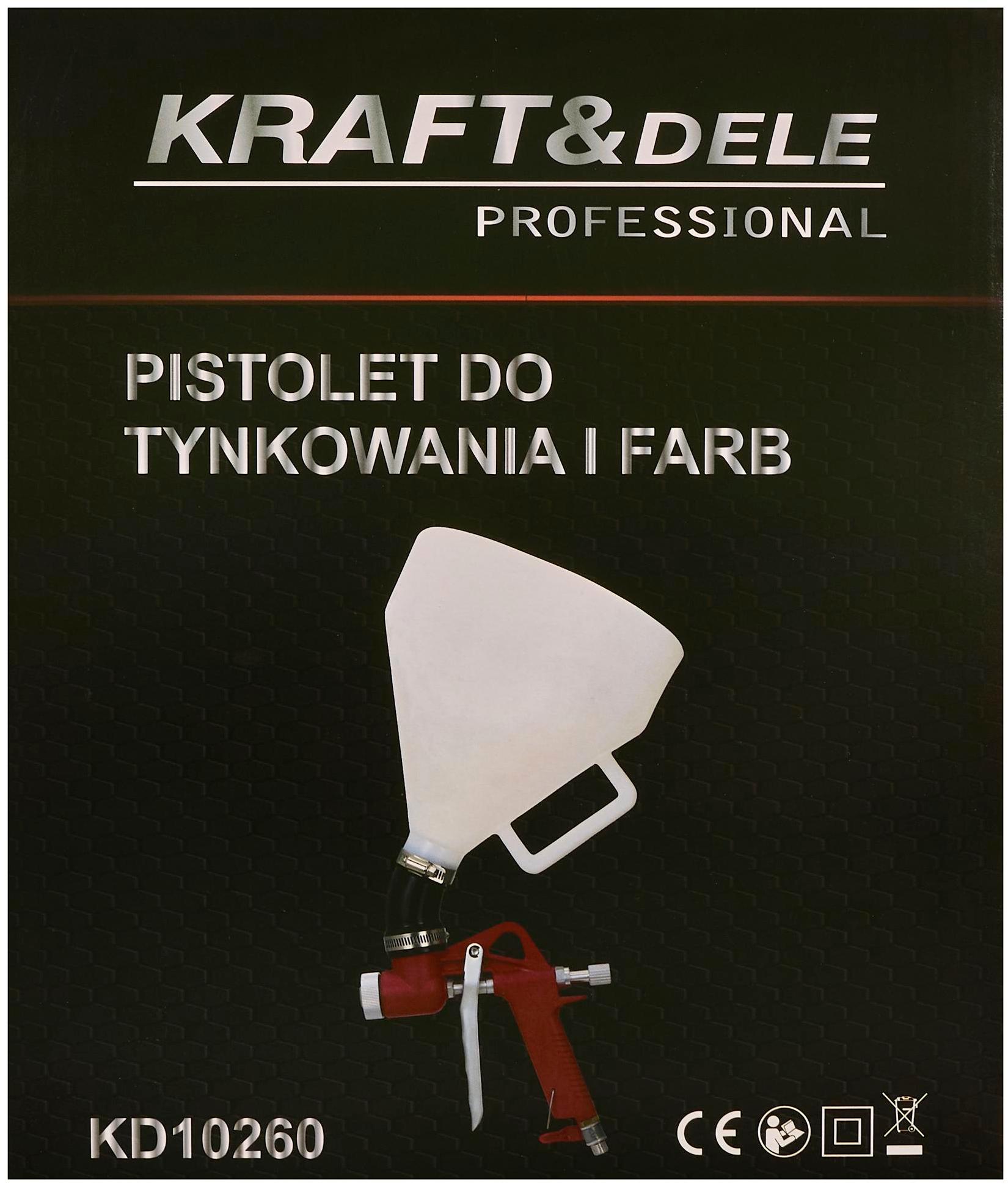 KD10260 to pneumatyczny pistolet grawitacyjny przeznaczony do nakładania tynków, gładzi gipsowych, farb emulsyjnych i klejowych oraz tynków akrylowych. Aluminiowa konstrukcja z obrotowym kolanem i zestawem trzech dysz pozwala na pracę zarówno na ścianach, jak i sufitach.
