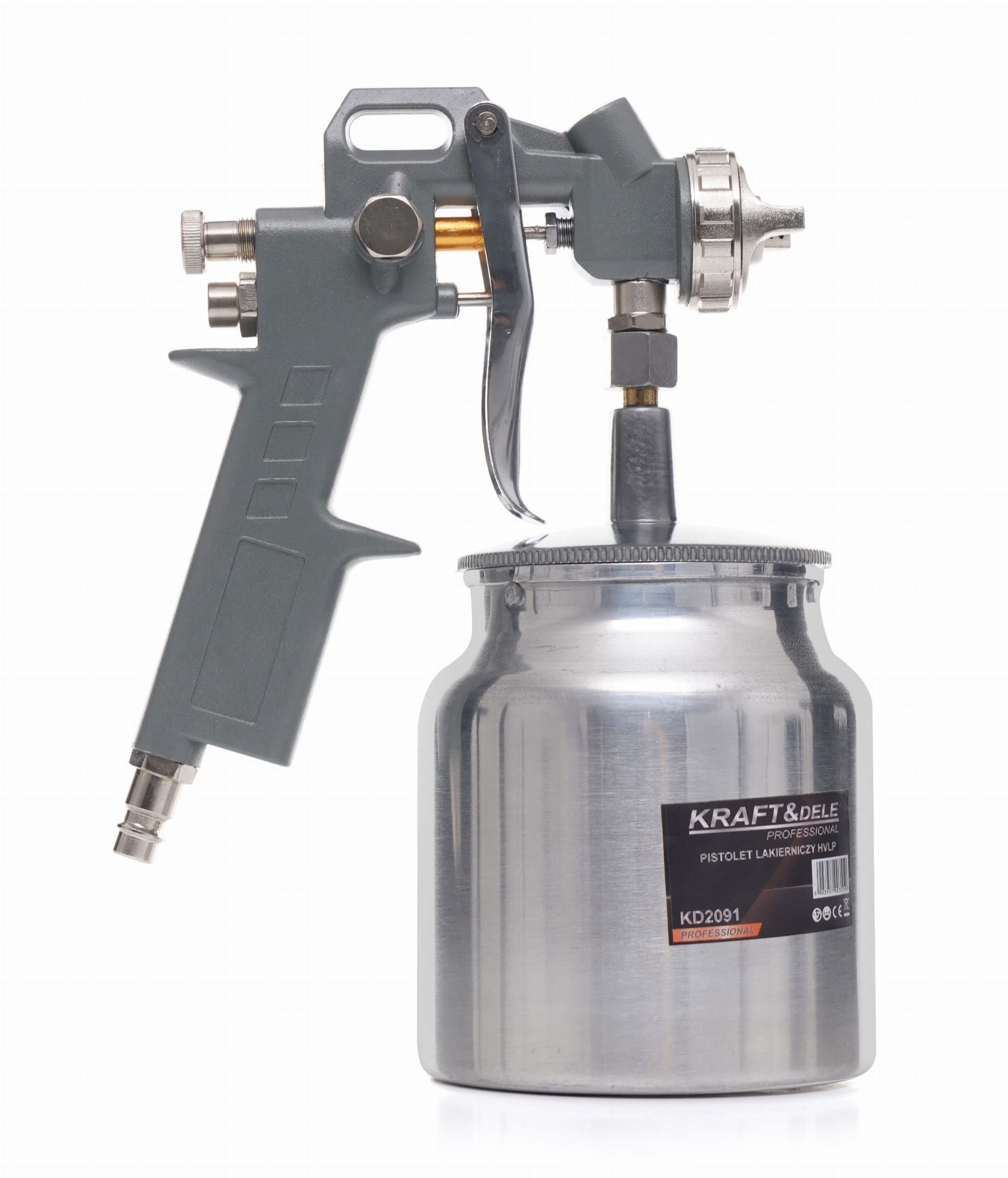 KD2091 to grawitacyjny pistolet lakierniczy HVLP wykonany ze stopu aluminium, przeznaczony do natryskowego nakładania farb, lakierów i gruntów w warsztacie lakierniczym, stolarskim oraz garażu. Technologia HVLP (High Volume Low Pressure) zapewnia efektywne przeniesienie materiału na powierzchnię przy ograniczonych stratach na mgłę.