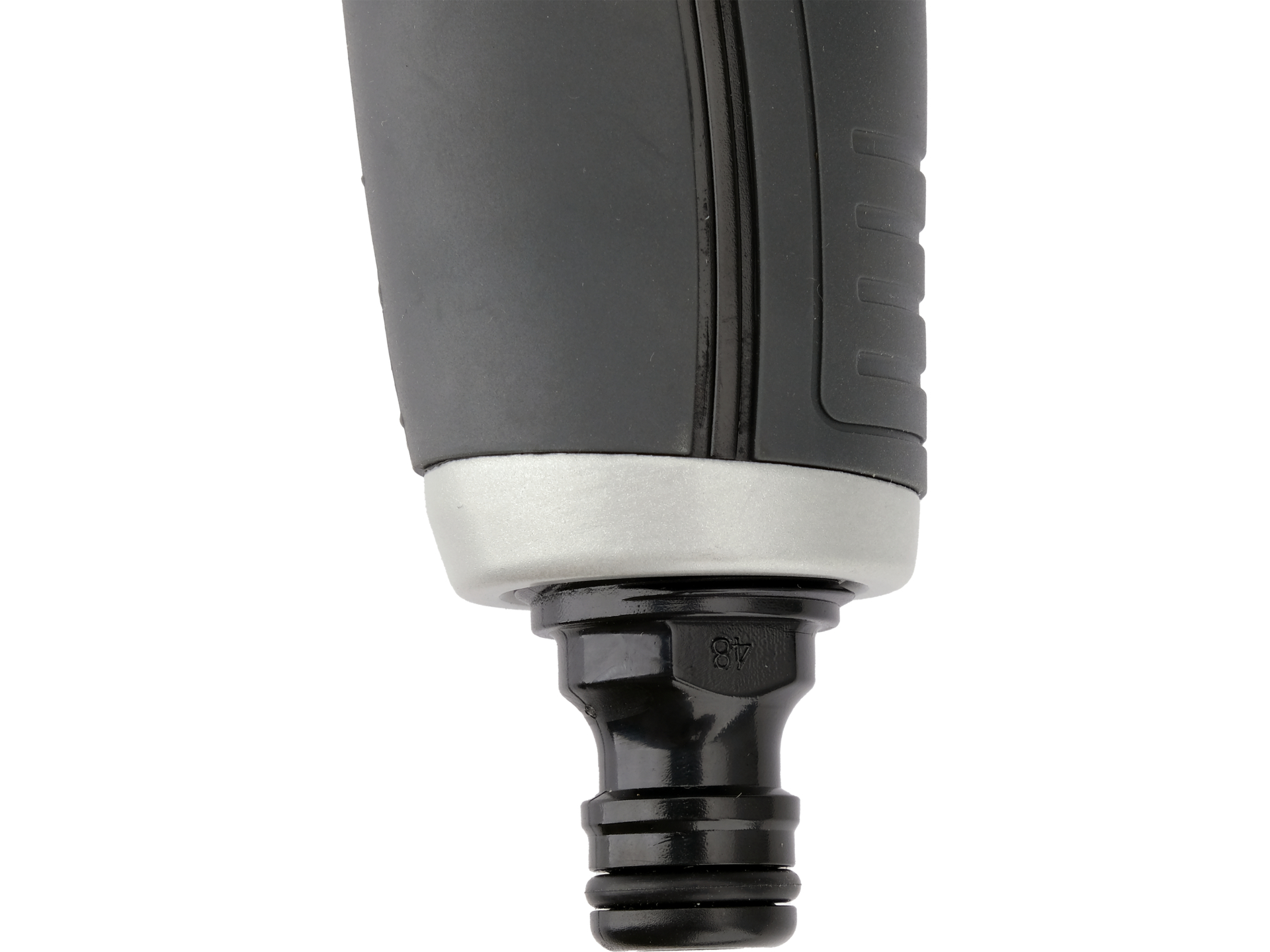 Standardowe przyłącze pistoletu pasuje do węży o średnicy wewnętrznej 13 mm (1/2") i 16 mm (5/8"). Jeśli wąż ma inną średnicę lub system szybkozłączy innego producenta, może być konieczny adapter. Większość systemów ogrodowych (Gardena, Hozelock, Cellfast) oferuje adaptery uniwersalne.