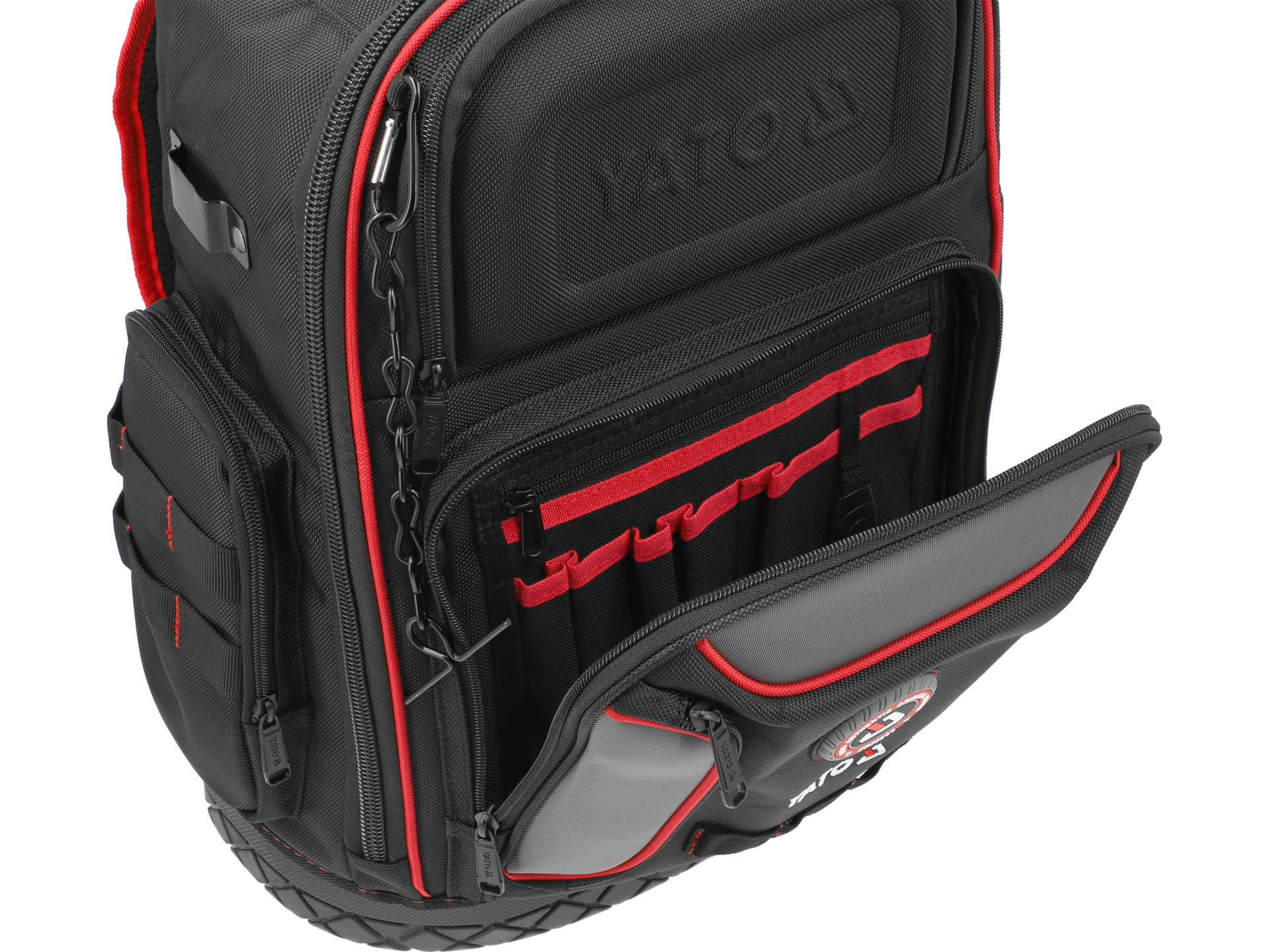 Plecak narzędziowy z wzmocnionego nylonu przeznaczony do transportu i organizacji narzędzi ręcznych oraz elektronarzędzi. Konstrukcja z 75 kieszeniami i wyjmowanym wkładem zapewnia systematyczną organizację sprzętu na budowie i w serwisie.
