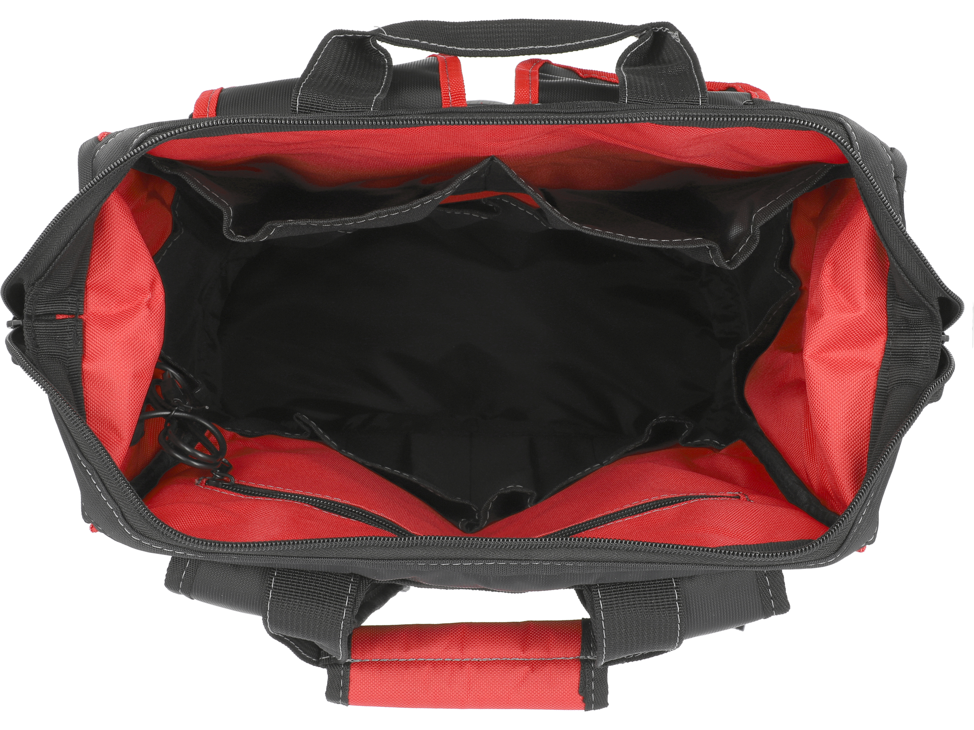 Główna komora z zamkiem błyskawicznym, wewnętrzne przegrody oraz zewnętrzne kieszenie umożliwiają segregację narzędzi według kategorii i rozmiaru. Ułatwia to szybki dostęp do potrzebnego sprzętu bez konieczności przeszukiwania całej zawartości.