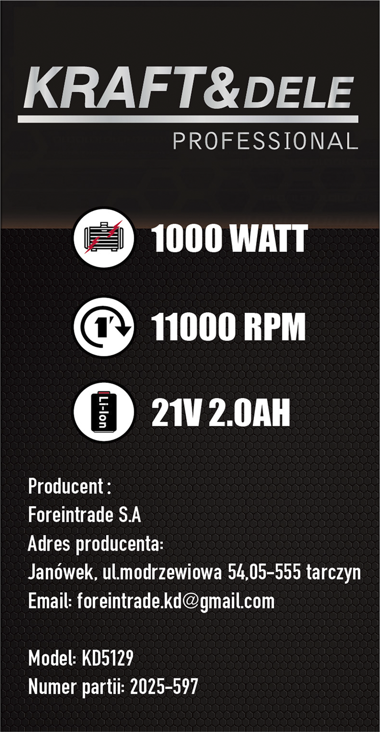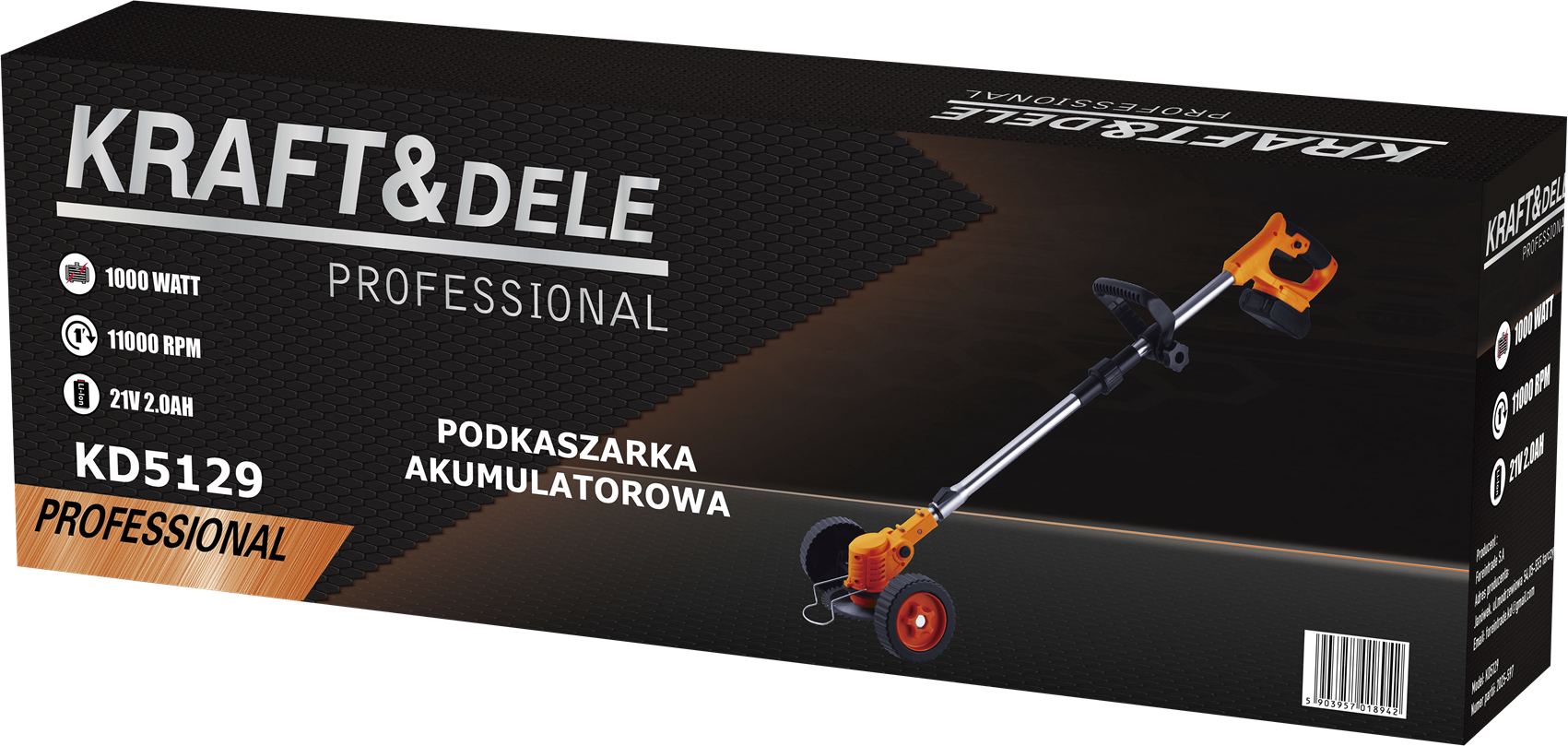 KD5129 to akumulatorowa podkaszarka marki KRAFT&DELE zasilana napięciem 21V, przeznaczona do koszenia trawy i chwastów w miejscach niedostępnych dla kosiarki — przy ogrodzeniach, krawężnikach, murach i wzdłuż ścieżek. Zestaw zawiera dwa akumulatory 2Ah, co umożliwia pracę bez przerwy na ładowanie przez wydłużony czas.