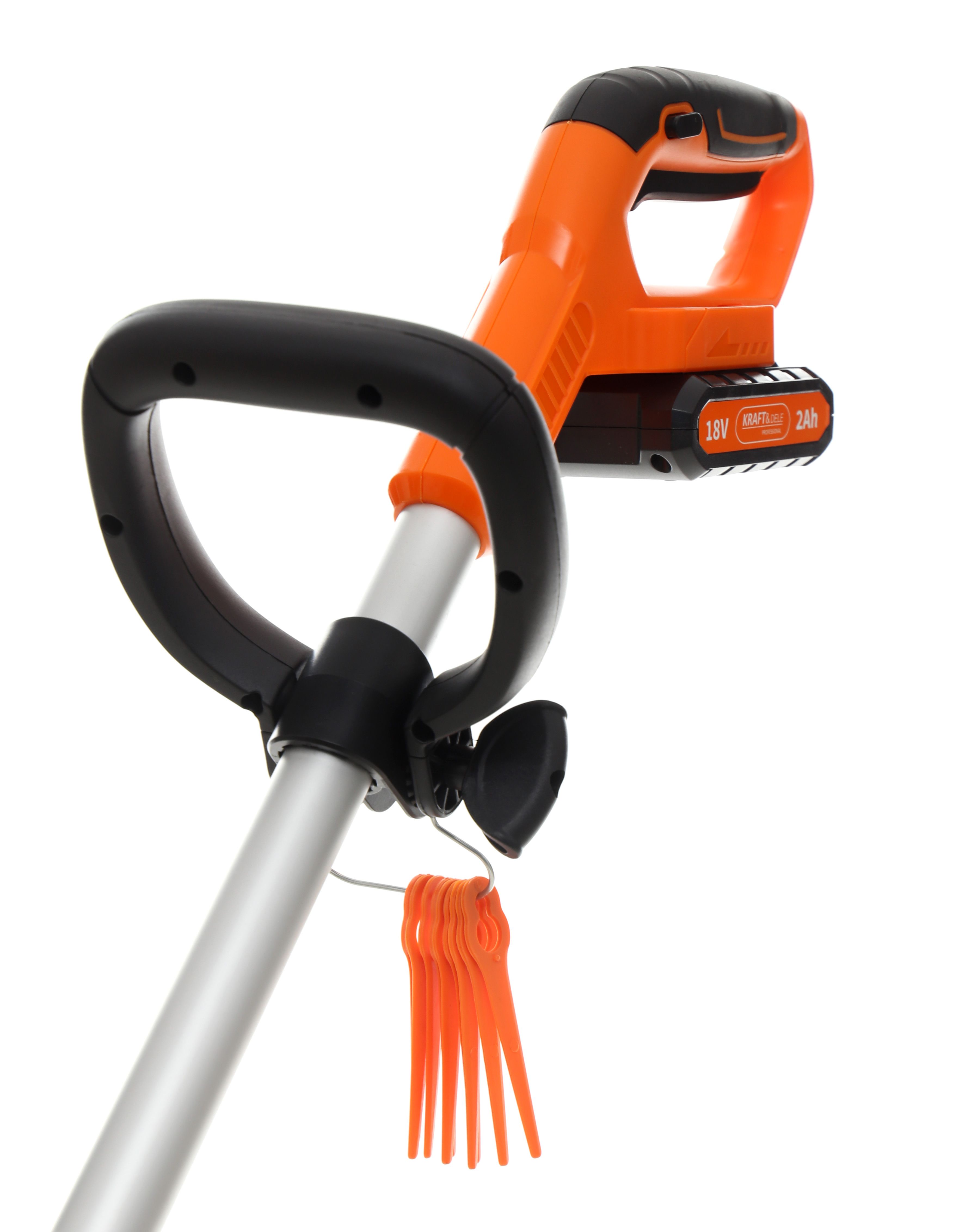 Model KRAFT&DELE KD5122 został zaprojektowany do prac wykończeniowych w ogrodzie, tam gdzie liczy się kontrola i dokładność. To podkaszarka do trawy akumulatorowa, którą łatwo wykorzystać w miejscach wymagających precyzyjnego prowadzenia.