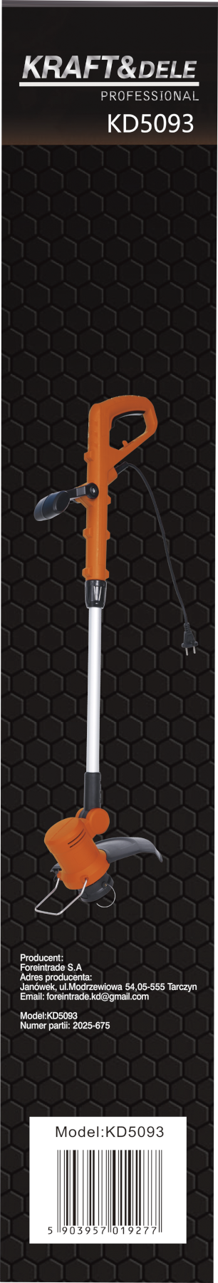 KD5093 to elektryczna podkaszarka z silnikiem o mocy 1600 W, przeznaczona do przycinania trawy w miejscach niedostępnych dla kosiarek – przy krawężnikach, murach, ogrodzeniach i rabatach. Regulowana długość rury i uchwytu rękojeści umożliwia dopasowanie geometrii pracy do wzrostu użytkownika. Waga netto 1,6 kg przekłada się na niskie zmęczenie przy dłuższej eksploatacji.