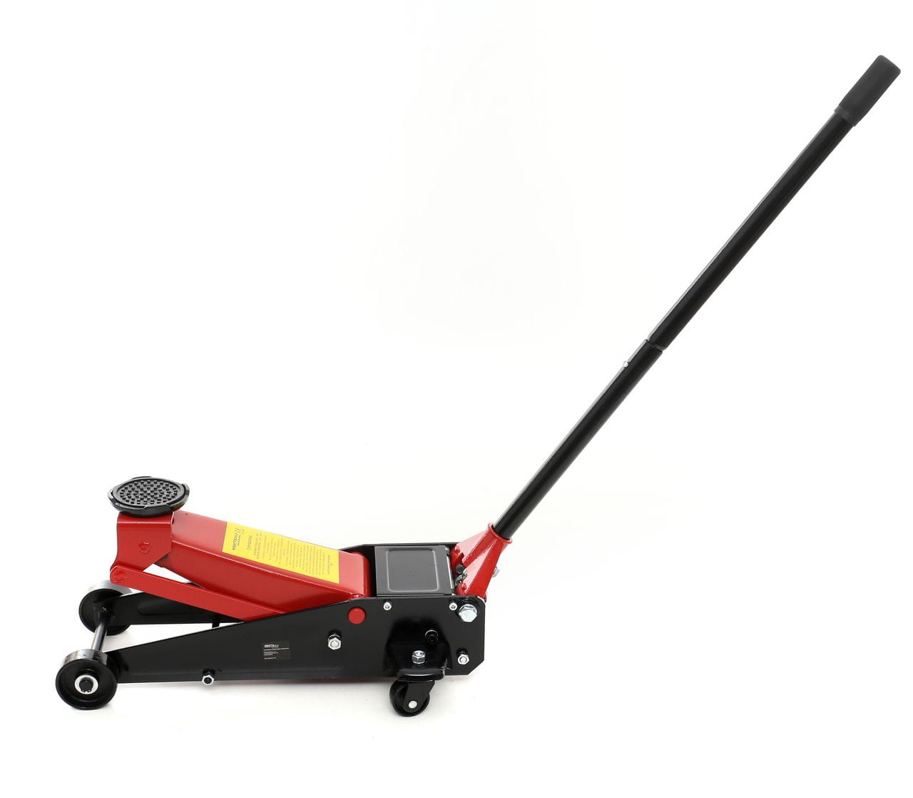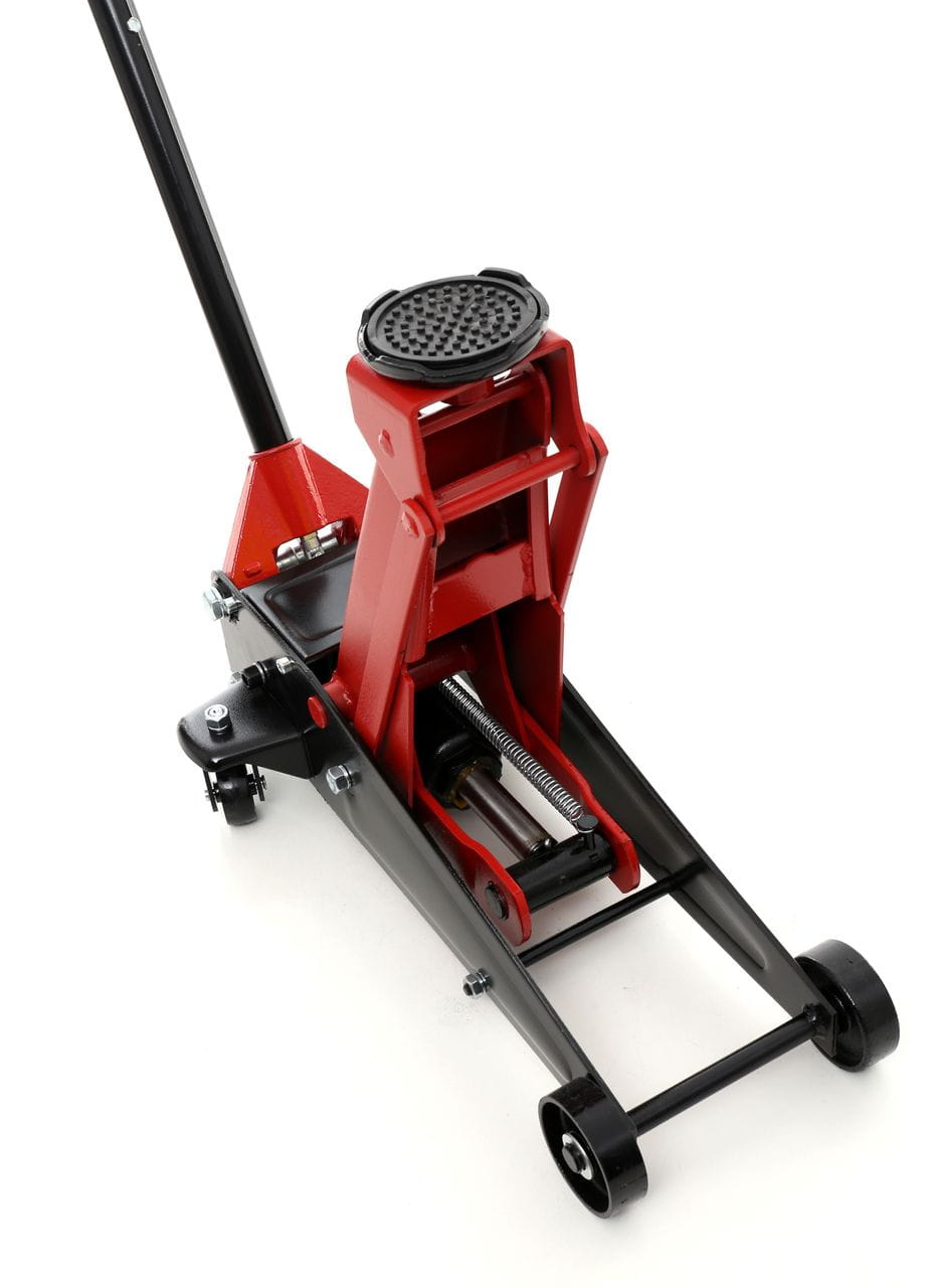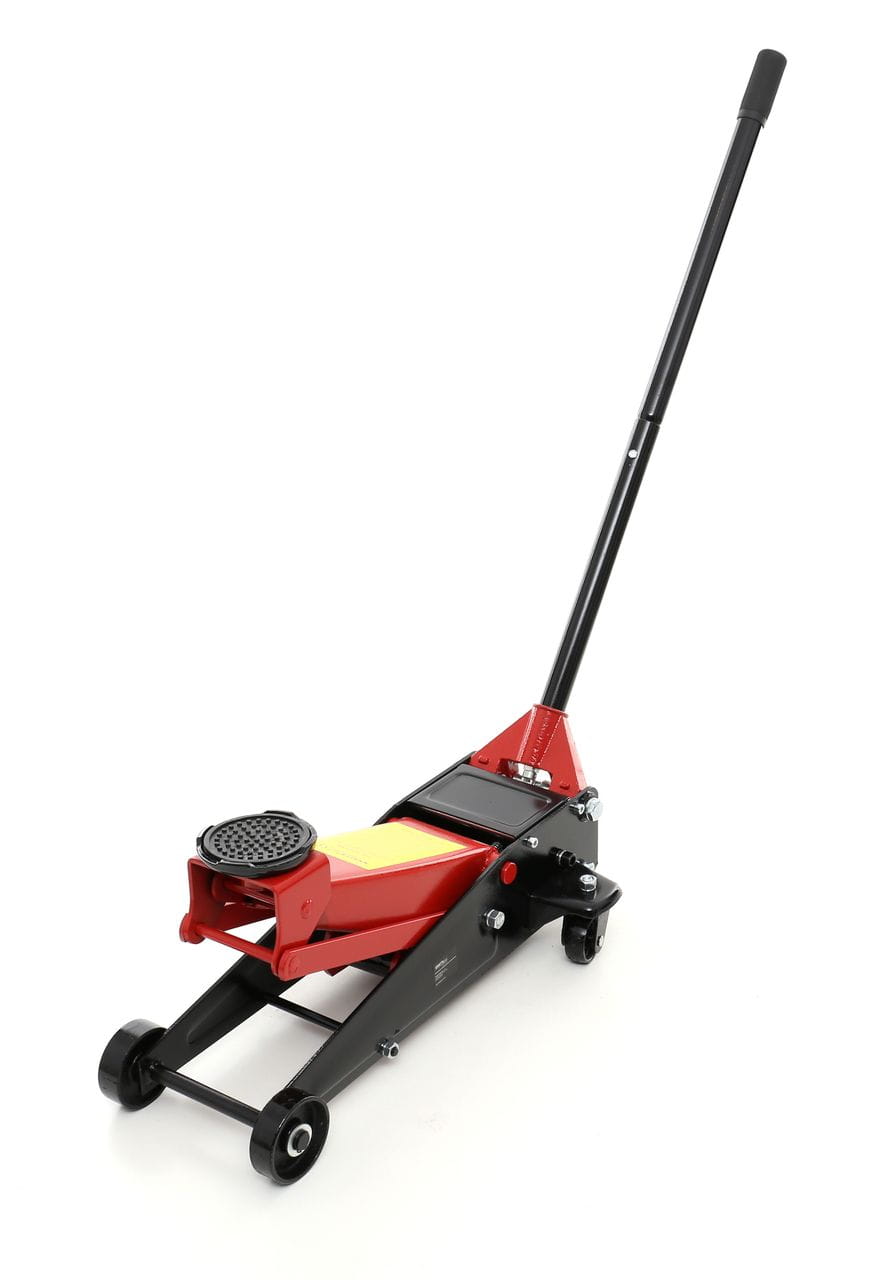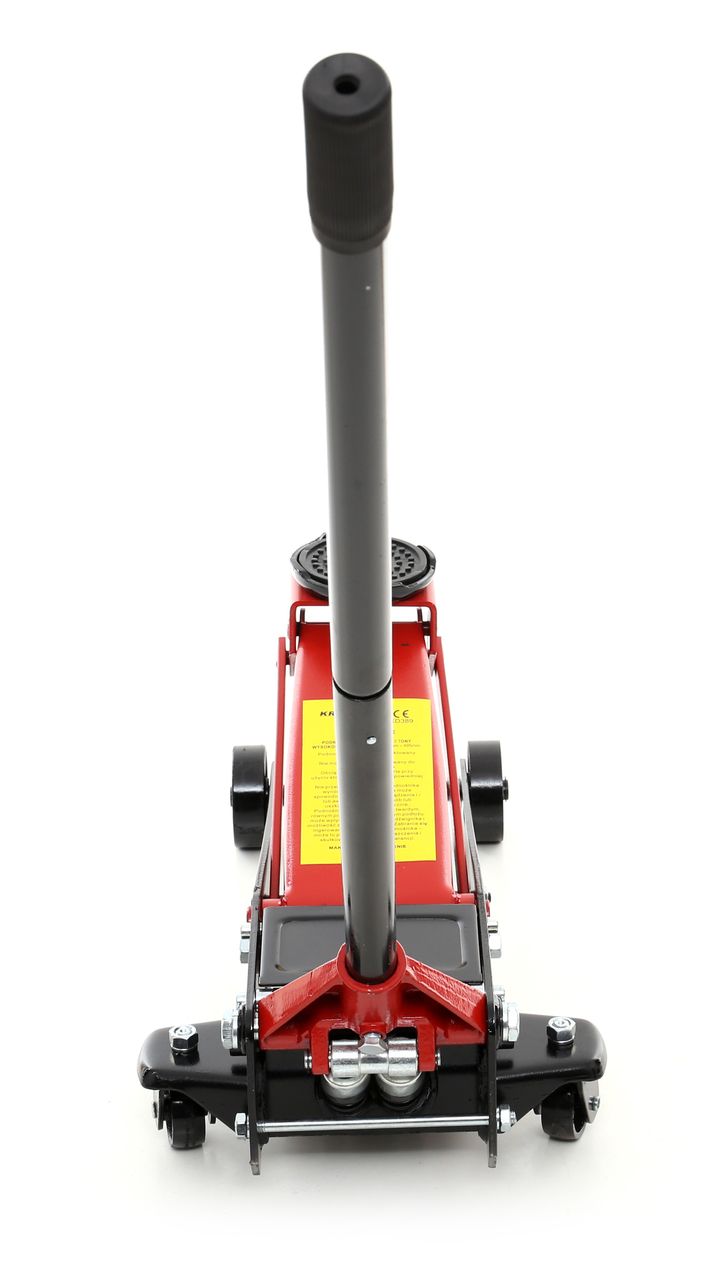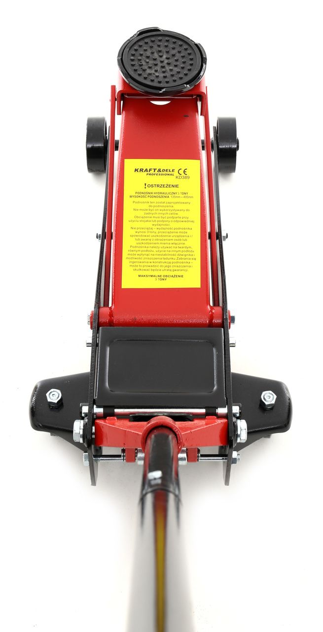 Hydrauliczny podnośnik podłogowy o udźwigu 3000 kg, przeznaczony do unoszenia pojazdów osobowych i dostawczych w zakresie wysokości od 135 do 495 mm. Stalowa konstrukcja z tłoczonymi profilami wzmacniającymi zapewnia stabilność podczas pracy pod obciążeniem.